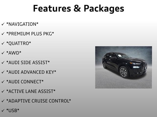 Navigation, Premium Plus Pkg, Quattro, AWD, Audi Side Assist, Audi Advanced Key, Audi Connect, Active Lane Assist, Adaptive Cruise Control, USB, Satellite Radio, Smart Phone Interface, Bluetooth, Heated Seats, Blind Spot Monitor, Audi Virtual Cockpit, Heads Up Display, Top View Camera, Back Up Camera, Power Lift Gate, Panoramic Sunroof, Bang & Olufsen, LED Headlights, Apple CarPlay, Super low miles! Steering Wheel Controls, Audi Beam Rings, Heated Steering Wheel. Carfax One-Owner. Every vehicle comes with a thorough inspection report, Carfax history report and market evaluation. Many of our vehicles sell within the first 14 days so we highly encourage you to call to check availability.