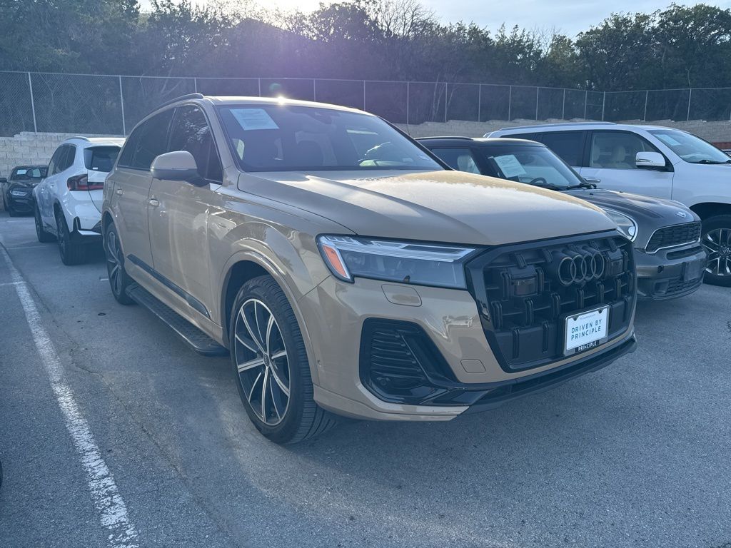 2025 Audi Q7 45 Premium Plus quattro CARFAX One-Owner. Sakhir Gold Metallic Recent Arrival! Anthracite Gray Audi Rings, Black Door Blades, Black Exterior Trim, Black Grille, Black Optic Package, Black Roof Rails, Black Window Surrounds, Dark Chrome Exhaust Tips, Dual-Pane Acoustic Glass, Executive Package, Four-Zone Automatic Climate Control, Front Seats with Ventilation, Heated Rear Seats, Navigation system: Audi MMI Navigation plus with Touch Response, Power moonroof: Panoramic, Rear Door/Side Windows and Tailgate Sunshades, Traffic Sign Recognition, Wheels: 21" 10-Spoke-Star Design Bi-Color. Clean CARFAX. At Principle BMW of San Antonio, we are more than just a dealership, we are a five-time BMW Center of Excellence winner and your destination for the best selection, service, and value in Texas. As one of the largest BMW dealerships in North America, we offer an unrivaled inventory of luxury performance vehicles paired with expert knowledge, and an unwavering passion for the Ultimate Driving Machine. Experience the difference at Principle BMW of San Antonio—where luxury meets performance, and guests become family.