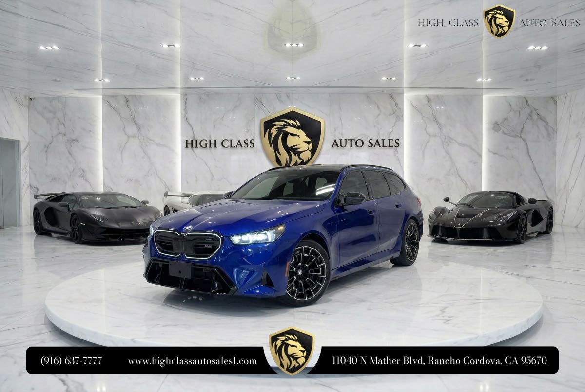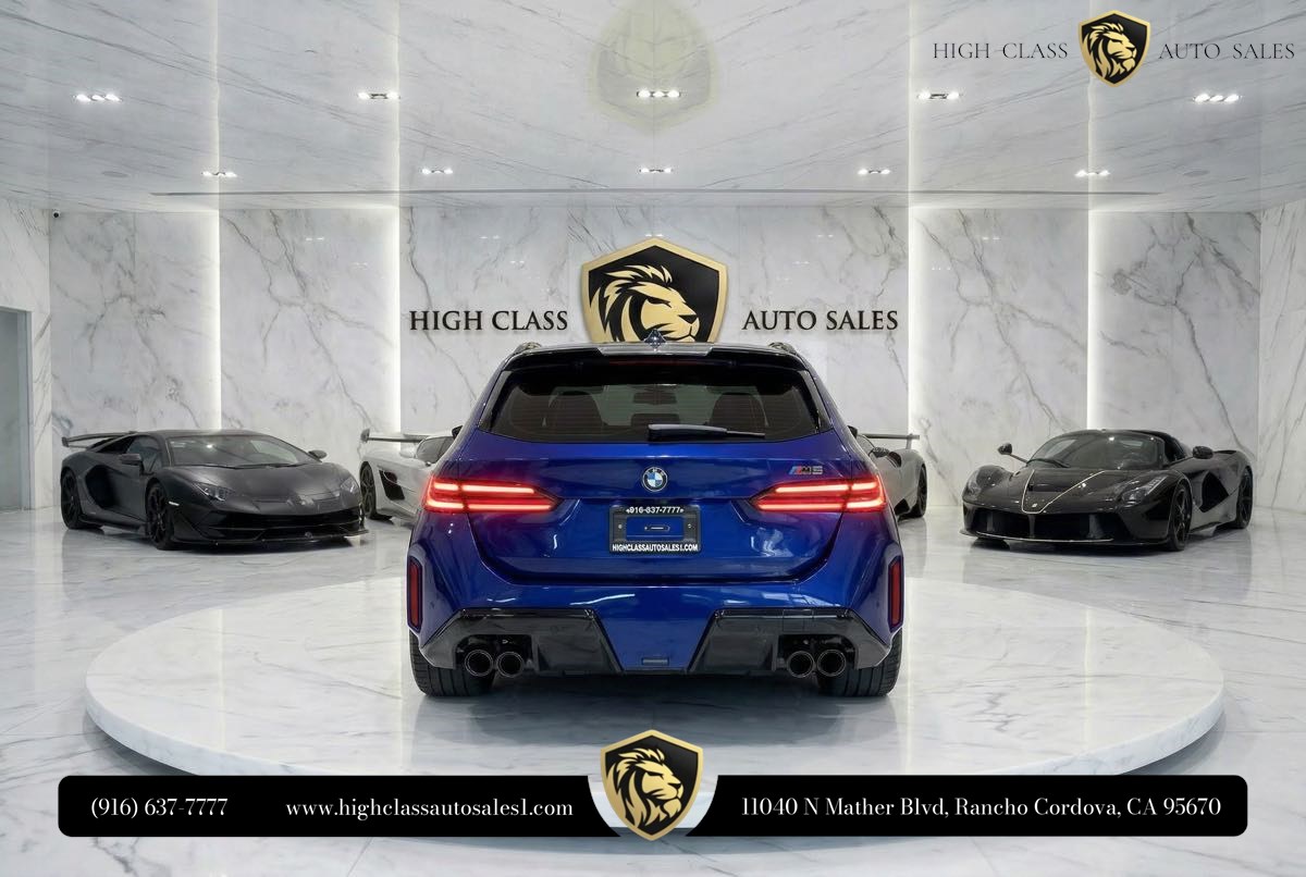 Introducing the 2025 BMW M5 Touring, a Carfax 1-Owner gem that sets the bar for luxury and performance. Draped in the striking Marina Bay Blue Metallic, this vehicle is as eye-catching as it is technologically advanced. The exterior is further enhanced by the sophisticated BMW Iconic Glow Kidney Grille, providing a modern and dynamic presence on the road. Underneath its sleek hood, the M5 Touring is powered by a robust 4.4L V8 engine, delivering unparalleled performance and driving pleasure. Inside, the cabin complements its bold exterior with the elegant Silverstone/Black interior, offering both style and comfort. The Driving Assistance Professional Package ensures that your journeys are as safe as they are exhilarating, with state-of-the-art features that assist in every driving scenario. Elevate your driving experience even further with the Executive Package, which adds a layer of luxury and convenience tailored to your lifestyle. The M Drive Professional package puts ultimate control at your fingertips, whether you are navigating mountain roads or cruising down the highway. This Touring model boasts all-wheel drive, offering superior traction and stability no matter the road conditions. Designed for both performance enthusiasts and families alike, the BMW M5 Touring doesn’t compromise on space or comfort. Every detail, from its advanced tech features to its plush seating, is crafted with precision and expertise. Take the wheel of this remarkable vehicle and experience the perfect blend of power, luxury, and innovation in one unparalleled package.