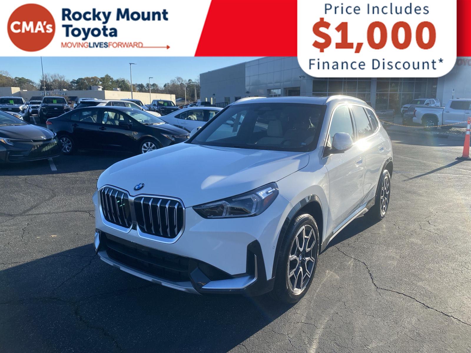 Thank you for choosing CMA's Rocky Mount Toyota, this Alpine White 2025 BMW X1 xDrive28i is a great choice! Check out the following: No Accidents! One Owner! City 24/ Hwy 33. Technology Package ($3,300 value). Pricing includes $1,000 dealer financing discount. Customer must finance with dealer through in house finance partners, or add back the $1,000 for any outside liens or cash purchases. Pricing excludes tax, tags, doc fee, and dealer added accessories. All vehicles are sold on a first come first serve basis due to multiple people interested in the same vehicles without prior knowledge. Pricing Info Good Today Through Close of Business. Pricing includes $1,000 dealer financing discount. Customer must finance with dealer through in house finance partners, or add back the $1,000 for any outside liens or cash purchases. Pricing excludes tax, tags, doc fee, and dealer added accessories. All vehicles are sold on a first come first serve basis due to multiple people interested in the same vehicles without prior knowledge. Pricing Info Good Today Through Close of Business. At Rocky Mount Toyota we believe in Live Market Pricing on all vehicles in our inventory. We use real-time market price comparisons to constantly adjust prices to provide all buyers the best value price possible. Pricing Info Good Today Through Close of Business. We utilize state-of-the-art technology to constantly monitor pricing trends in order to offer our shoppers our best competitive pricing and value. Our entire team is committed to helping you buy a car the way we would want to buy a car!