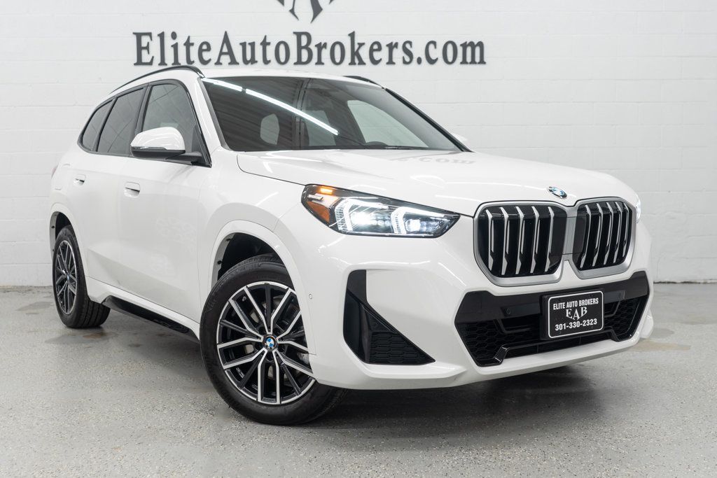 2025 BMW X1 xDrive AWD M Sport. 18k miles. M Sport Pkg, Convenience pkg, Active Parking Assistance, Lane keep assist, Active blind spot detection, Forward collision mitigation, Panoramic Sunroof, Heated Seats, Heated steering wheel, Hi-Fi Sound, Apple CarPlay, Satellite radio, USB/Bluetooth, Wireless charging, LED Headlights with cornering lights, Power folding mirrors, Power lift gate, Roof Rails, Ambient lighting, Comfort access-Keyless entry and even more. This low mileage BMW features a great combination of Alpine White exterior over a beautiful Red/Black interior. Showroom Ready!