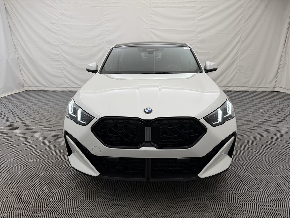 The 2025 BMW X2 xDrive28i Sports Activity Coupe is a striking blend of elegance and performance, showcased in its stunning Mineral White Metallic exterior. Sporting an efficient yet powerful 2.0L 4-cylinder engine, this coupe offers dynamic agility with the security of an All-Wheel Drive drivetrain. Its sleek design is further elevated by LED headlights and an athletic profile, riding confidently on 19-inch tires with a 245/45R19 summer specification. The vehicle not only looks proficient but also integrates smart features like rain sensing wipers and a hands-free liftgate for a tailored driving experience. Inside, the BMW X2 continues to amaze with its sophisticated Black perforated Veganza upholstery, creating a luxurious and comfortable atmosphere. The convenience package included offers keyless entry for seamless access, while the heated steering wheel adds further comfort on those cold mornings. Technology is at your fingertips with integrated navigation and telematics systems, ensuring you're always connected and informed on the road. This vehicle prioritizes safety with a lane departure warning system, enabling you to drive with added confidence. Communication and connectivity are enhanced by a comprehensive Bluetooth setup, ensuring you can sync devices effortlessly. The power liftgate further underscores the model’s utility, allowing easy access to the storage space. With meticulously designed features and a robust drivetrain, the BMW X2 xDrive28i Sports Activity Coupe embodies a perfect fusion of style, technology, and functionality. From its mineral white sheen to its technologically advanced cabin, this coupe is tailored for those who seek sophistication and performance in every journey it undertakes.