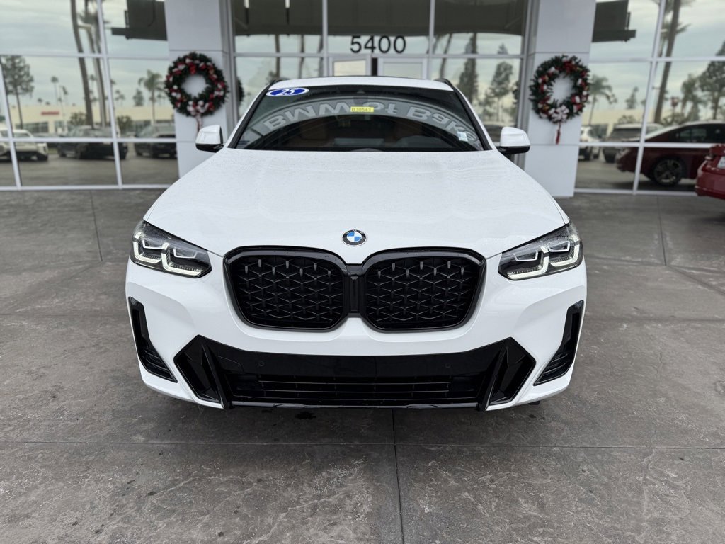 Balance of Factory Warranty still applies. Carfax One-Owner. Clean Carfax. Alpine White 2025 BMW X4 xDrive30i M Sport Package AWD 8-Speed Automatic Sport 2.0L I4 TwinPower Turbo One Owner, New Tires, Bluetooth, Back up camera, Moon Roof/ Panoramic Roof, Navigation/ GPS/ Nav, AWD/ 4x4/ Four Wheel Drive, 12 Speakers, 4-Wheel Disc Brakes, ABS brakes, Aerodynamic Kit, Air Conditioning, Alloy wheels, AM/FM radio: SiriusXM, Anti-whiplash front head restraints, Apple CarPlay & Android Auto Compatibility, Auto High-beam Headlights, Auto-dimming door mirrors, Auto-dimming Rear-View mirror, Automatic temperature control, BMW Assist eCall, BMW TeleServices, Brake assist, Bumpers: body-color, Connected Package Pro, ConnectedDrive Services, Delay-off headlights, Driver door bin, Driver vanity mirror, Dual front impact airbags, Dual front side impact airbags, Electronic Stability Control, Enhanced USB & Bluetooth w/Smartphone Integration, Extended Shadowline Trim, Exterior Parking Camera Rear, Four wheel independent suspension, Front anti-roll bar, Front Bucket Seats, Front Center Armrest, Front dual zone A/C, Front reading lights, Fully automatic headlights, Garage door transmitter, Genuine wood dashboard insert, Genuine wood door panel insert, harman/kardon Surround Sound System, Heated door mirrors, Heated Front Seats, Heated front seats, Hi-Fi Sound System, High-Gloss Shadowline Roof Rails, Illuminated entry, Knee airbag, Leather steering wheel, Live Cockpit Pro w/Navi, Low tire pressure warning, M Shadowline Lights, M Sport Package, M Sport Pkg, M Steering Wheel, Memory seat, Navigation System, Occupant sensing airbag, Outside temperature display, Overhead airbag, Overhead console, Panic alarm, Passenger door bin, Passenger vanity mirror, Perforated SensaTec Upholstery, Power door mirrors, Power driver seat, Power Front Seats, Power Liftgate, Power moonroof, Power passenger seat, Power steering, Power windows, Radio data system, Radio: AM/FM Audio System, Rain sensing wipers, Rear air conditioning, Rear anti-roll bar, Rear reading lights, Rear seat center armrest, Rear window defroster, Remote keyless entry, Security system, Shadowline Exterior Trim, Shadowline Package, SiriusXM Satellite Radio w/1 Year Subscription, Smoke Grey Aluminum Rhombicle Trim, Speed control, Speed-sensing steering, Speed-Sensitive Wipers, Split folding rear seat, Sport Seats, Sport steering wheel, Steering wheel mounted audio controls, Tachometer, Telescoping steering wheel, Tilt steering wheel, Traction control.