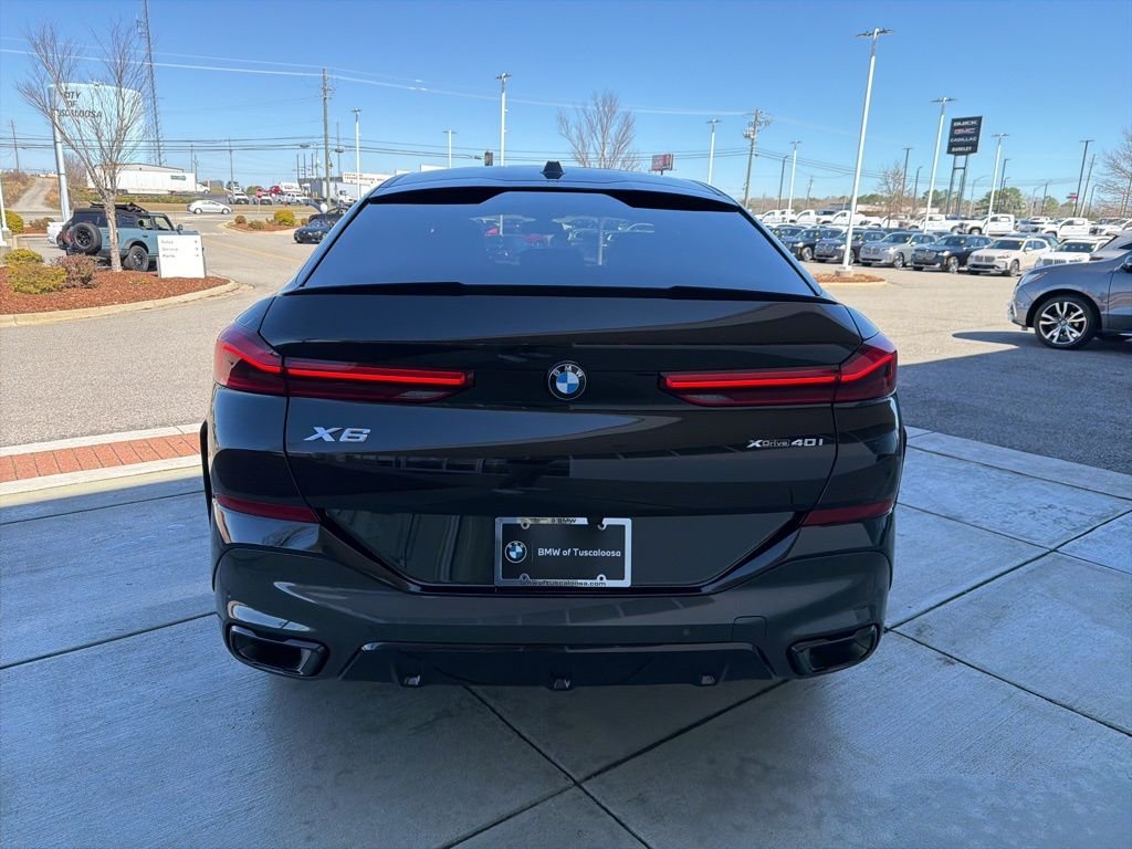 Priced below KBB Fair Purchase Price! Odometer is 11518 miles below market average! Clean CARFAX. Black Leather. BMW of Tuscaloosa presents this 2025 BMW X6 xDrive40i in Black Sapphire Metallic exterior with Black interior. The vehicle is equipped with Climate Comfort Package, Connected Package Pro, Executive Package, M Sport Package Pro, M Sport Professional Package, Parking Assistance Package, and Black Leather.