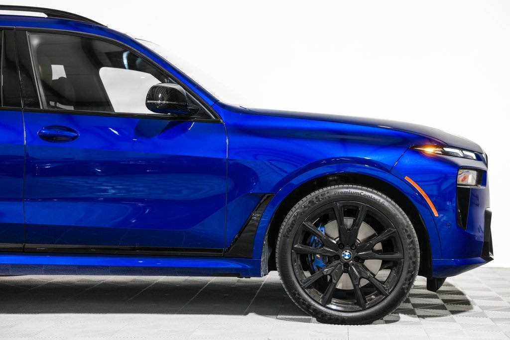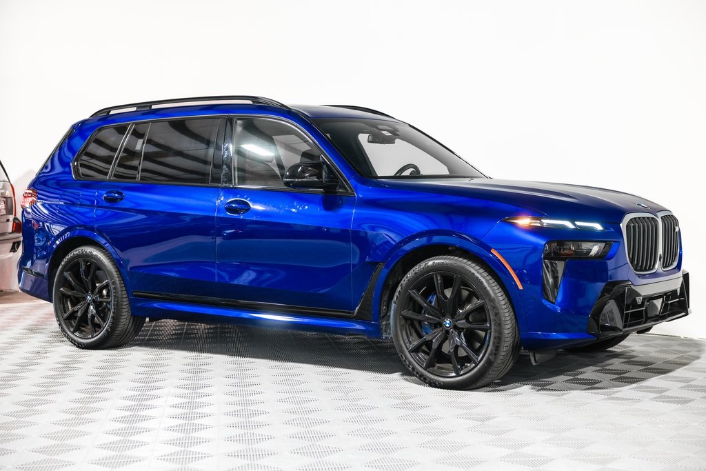 CARFAX One-Owner. Clean CARFAX. Marina Bay Blue Metallic 2025 BMW X7 M60i AWD 8-Speed Automatic Sport 4.4L V8 DOHC 32V 16 Speakers, 3.15 Axle Ratio, 3rd row seats: split-bench, 4-Wheel Disc Brakes, 5-Zone Automatic Climate Control, ABS brakes, Active Cruise Control with Stop and Go, Active Driving Assistant Pro, Adaptive suspension, Air Conditioning, Alloy wheels, AM/FM radio: SiriusXM with 360L, AM/FM Stereo, Apple CarPlay and Android Auto Compatibility, Apple CarPlay Compatibility, Auto High-beam Headlights, Auto tilt-away steering wheel, Auto-dimming door mirrors, Auto-dimming Rear-View mirror, Auto-leveling suspension, Automatic temperature control, BMW Assist ECall, BMW TeleServices, Brake assist, Bumpers: body-color, Carbon Fiber Trim, Climate Comfort Package, Compass, Connected Package Pro, ConnectedDrive Services, Delay-off headlights, Driver door bin, Driver vanity mirror, Driving Assistance Professional Package, Dual front impact airbags, Dual front side impact airbags, Electronic Stability Control, Emergency communication system: BMW Assist eCall, Extended Merino Leather Upholstery, Exterior Parking Camera Rear, Four wheel independent suspension, Front and Rear Heated Seats, Front anti-roll bar, Front Bucket Seats, Front Center Armrest, Front dual zone A/C, Front reading lights, Front Ventilated Seats, Fully automatic headlights, Garage door transmitter, Genuine wood console insert, Genuine wood dashboard insert, Genuine wood door panel insert, Gesture Control, Harman/Kardon Surround Sound System, harman/kardon Speakers.