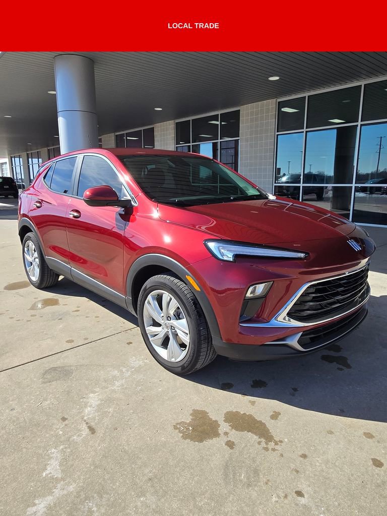 Discover the exceptional 2025 Buick Encore GX Preferred, a compact SUV that blends style, performance, and uncompromising quality. This one-owner, local trade-in boasts a clean CARFAX history, ensuring you can drive with confidence. Meticulously maintained, this Encore GX features one owner, clean CARFAX, and local trade. Under the hood, the ECOTEC 1.3L Turbo engine delivers an impressive 155 horsepower and 174 lb-ft of torque, providing a thrilling driving experience. Paired with a CVT transmission and front-wheel drive, this SUV offers an exceptional balance of power and efficiency. Adorned in the captivating Cinnabar Metallic exterior, this Encore GX Preferred exudes a refined and sophisticated presence. The spacious and well-appointed interior provides a comfortable and versatile driving experience. Cloth with Leatherette seat trim, a 6-way manual driver's seat, and a 4-way manual passenger seat ensure a tailored fit for every occupant. The split-folding rear seat and generous cargo space offer ample room for your daily adventures and weekend getaways. Backed by Buick's renowned reputation for quality and reliability, this Encore GX Preferred is a true standout in the compact SUV segment. Experience the exceptional blend of style, performance, and features that make this vehicle a must-see.
