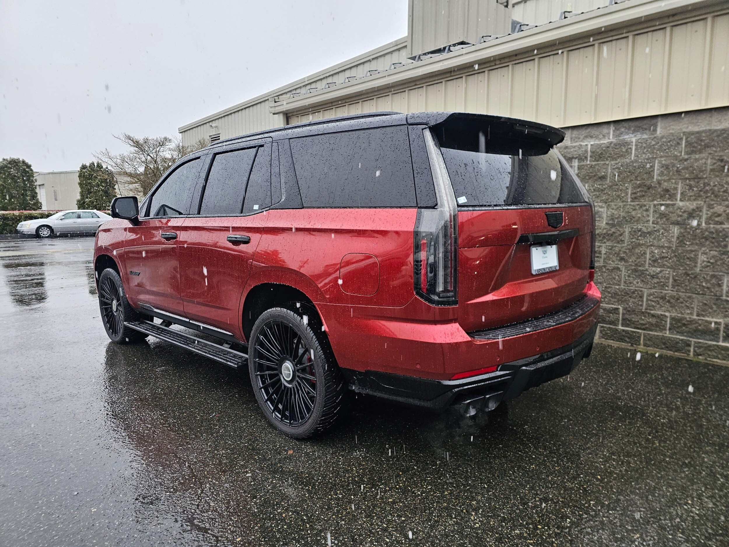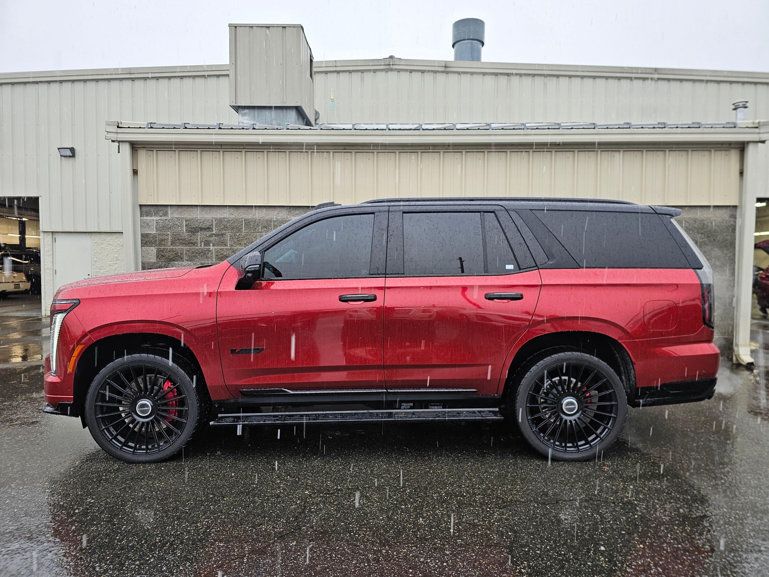 2025 Cadillac Escalade-V AWD Supercharged V8 Gloss Red Wrap Crystal White Tricoat Underneath This 2025 Cadillac Escalade-V is a true flagship performance SUV, powered by a hand-built 6.2L Supercharged V8 producing 682 horsepower. Combining supercar-level performance with Cadillac's highest level of luxury, the Escalade-V stands at the top of the full-size luxury SUV segment. This example features a high-quality Gloss Red exterior wrap, giving it an incredibly bold and aggressive appearance while preserving the original Crystal White Tricoat factory paint and finish underneath. Inside, the Escalade-V offers Jet Black Full Semi-Aniline Leather with Mondrian Quilting and is fully equipped with Cadillac's most advanced technology and comfort features. Highlights include: AKG 36-Speaker Studio Reference Audio, Magnetic Ride Control, Air Ride Adaptive Suspension, Night Vision, Power Panoramic Sunroof, Rear Seat Entertainment, Power-Retractable Assist Steps, Soft-Close Doors, 24" V-Series Wheels, Head-Up Display, and Cadillac's full suite of driver assistance technology. A rare opportunity to own Cadillac's most powerful Escalade ever built, presented with a striking custom appearance while retaining its original protected paint.