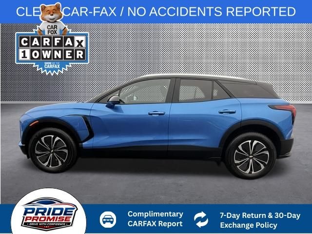 One-owner, clean Car-Fax / no accidents reported, back-up camera, Bluetooth hands-free cell, remainder of factory warranty, service records available, 2 sets of keys, all-wheel drive, Blazer EV LT, 4D Sport Utility, Electric Motor, AWD, Riptide Blue Metallic, Black Cloth. 2025 Chevrolet Blazer EV LT 1-Speed Automatic Electric Motor Riptide Blue Metallic AWD. Recent Arrival! It should come as no surprise that at Pride Chevrolet of Lynn, we take pride in every little thing we do. For years our Chevrolet dealership in Lynn, MA, has been pleased to be an essential part of the local community and we make it a point to ensure each interaction our valued customers have at our dealership is a positive one. We're known for our honest and transparent sales team that goes above and we make sure each customer is happy. We're known for our customer service and we're happy to provide you with the best experience possible. That's because we view everyone as an individual with his or her own specific set of needs and we empower our employees to make positive decisions that will ensure an outstanding experience for all. So, come in, chat with our Chevy sales and service teams and find the perfect solution to your automotive needs!