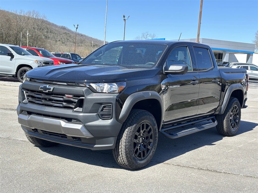 This vehicle has the following options: Preferred Equipment Group 0TR (Automatic Emergency Braking, Chevy Safety Assist, Following Distance Indicator, Forward Collision Alert, Front Pedestrian & Bicyclist Braking, IntelliBeam Automatic High Beam On/Off, and Lane Keep Assist w/Lane Departure Warning), Technology Package (Adaptive Cruise Control, HD Surround Vision, and Rear Pedestrian Alert), Trail Boss Convenience Package II (4-Spoke Wrapped Steering Wheel, 8-Way Power Driver Seat Adjuster, Evotex Seat Trim, Heated Driver & Front Passenger Seats, Heated Steering Wheel, Power Driver Lumbar Control Seat Adjuster, Remote Vehicle Starter System, and Wireless Phone Charging), 4WD, 1st & 2nd Row All-Weather Floor Liner (LPO), 3.42 Rear Axle Ratio, 4-Way Manual Passenger Seat Adjuster, 4-Wheel Disc Brakes, 6 Speakers, 6-Speaker Audio System Feature, 6-Way Manual Driver Seat Adjuster, ABS brakes, Air Conditioning, Alloy wheels, AM/FM radio: SiriusXM, Apple CarPlay/Android Auto, Auto High-beam Headlights, Automatic temperature control, Black Spray-On Bedliner w/Chevrolet Logo, Brake assist, Cloth Seat Trim, Compass, Delay-off headlights, Driver door bin, Driver vanity mirror, Dual front impact airbags, Dual front side impact airbags, Electronic Stability Control, Emergency communication system: OnStar, Front anti-roll bar, Front Bucket Seats, Front Center Armrest, Front dual zone A/C, Front License Plate Kit, Front wheel independent suspension, Heated door mirrors, Illuminated entry, Low tire pressure warning, Navigation System, Occupant sensing airbag, Off-Road Assist Steps (LPO), Outside temperature display, Overhead airbag, Overhead console, Panic alarm, Passenger door bin, Passenger vanity mirror, Power door mirrors, Power steering, Power windows, Radio data system, Radio: 11.3 Diagonal Advanced Color LCD Display, Rear reading lights, Rear step bumper, Rear window defroster, Remote keyless entry, Security system, SiriusXM Trial Subscription, Speed control, Speed-sensing steering, Split folding rear seat, Steering Wheel Mounted Audio Controls, Steering wheel mounted audio controls, Tachometer, Tachometer (TBD), Tilt steering wheel (TBD), Traction control (TBD), Trip computer (TBD), Variably intermittent wipers (TBD), Wheels: 18 x 8.5 Black High Gloss Aluminum (TBD), and Wireless Phone Projection. Recent Arrival! 4WD. CARFAX One-Owner. Clean CARFAX. Black 2025 Chevrolet Colorado Trail Boss 4WD 8-Speed Automatic 2.7L I4 Turbocharged DOHC 16V LEV3-ULEV50 310hp Home Of The Lifetime Warranty!! Must be 8 model years or newer and under 100k miles to qualify. * See Dealer for details.