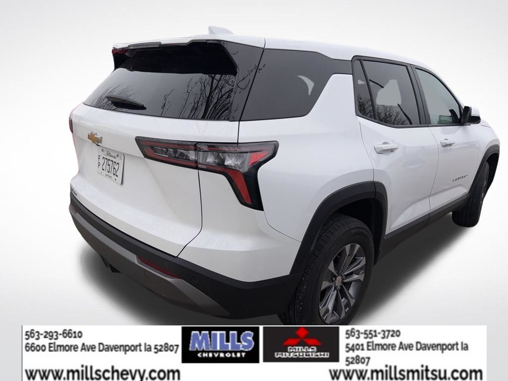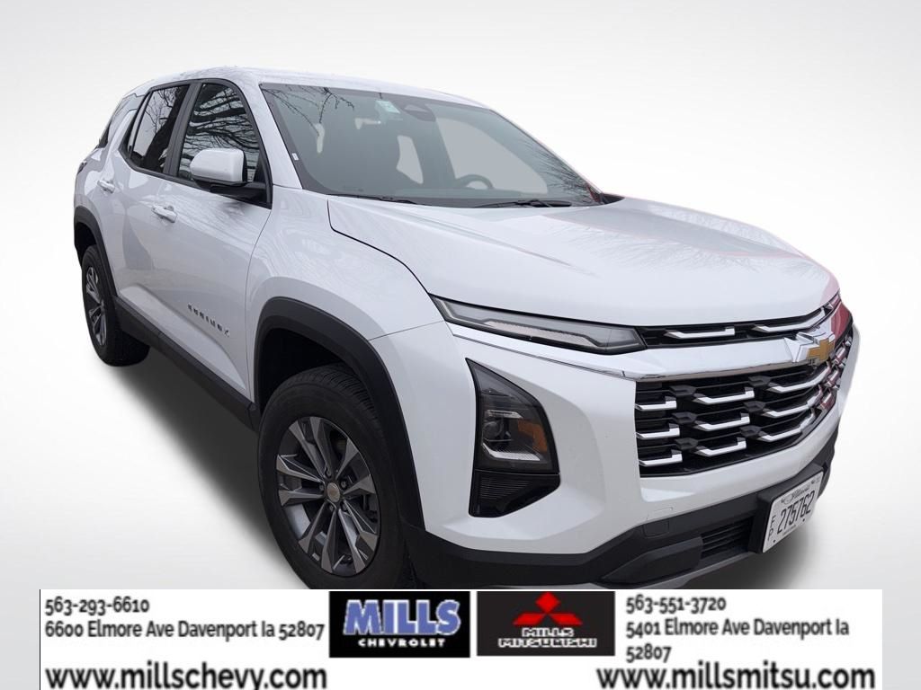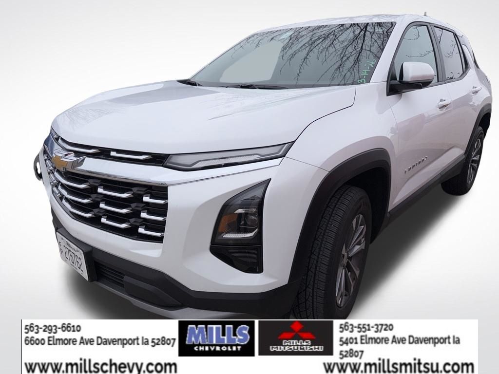 Recent Arrival! Summit White 2025 Chevrolet Equinox LT 4D Sport Utility 1.5L DOHC CVT FWD. Peace of mind. Vehicle history report. Title information. Odometer readings. Accident data (if applicable). Service history. Vehicle usage. Recall information (if applicable). Warranty status. Free CarFax report. A name you can trust. Mills Mitsubishi - Davenport is dedicated to your satisfaction before, during, and after your purchase. We'll go the extra mile to take care of you.