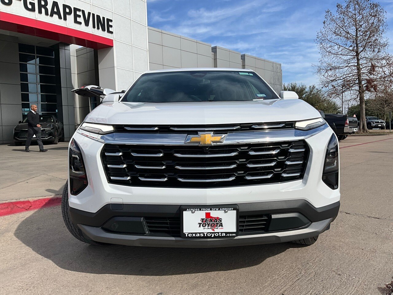 2025 Chevrolet Equinox LT Located just minutes from DFW Airport, Texas Toyota of Grapevine is the premier Toyota dealership to meet all of your needs. Clean CARFAX. Backup Camera, Blind Spot Monitor with Rear Cross-Traffic Alert, Heated Seats, LED Accent Lighting, Power Lift Tailgate, Navigation, Night Vision Auto-Dimming Mirror, Remote Start, Wheels, Across from DFW Airport, Lane Departure Alert with Sway Warning, Auto High Beams, Push Button Start, Apple CarPlay Compatible, Android Auto, 4-Wheel Disc Brakes, ABS brakes, AM/FM radio: SiriusXM, Auto High-beam Headlights, Auto tilt-away steering wheel, Brake assist, Bumpers: body-color, Cloth Seat Trim, Compass, Delay-off headlights, Driver 6-Way Manual Seat Adjuster, Driver door bin, Driver vanity mirror, Dual front impact airbags, Dual front side impact airbags, Electronic Stability Control, Emergency communication system: OnStar and Chevrolet connected services capable, Four wheel independent suspension, Front anti-roll bar, Front Bucket Seats, Front Center Armrest, Front Passenger 4-Way Manual Seat Adjuster, Front reading lights, Fully automatic headlights, Heated door mirrors, Heated Driver & Front Passenger Seats, Heated front seats, Illuminated entry, Low tire pressure warning, Navigation System, Occupant sensing airbag, Outside temperature display, Overhead airbag, Overhead console, Panic alarm, Passenger door bin, Passenger vanity mirror, Power door mirrors, Power windows, Preferred Equipment Group 1LT, Premium audio system: Chevrolet Infotainment 3, Radio data system, Radio: 11.3" Diagonal Advanced Color LCD Display, Rear anti-roll bar, Rear reading lights, Rear seat center armrest, Rear window defroster, Rear window wiper, Remote keyless entry, Security system, SiriusXM, Speed control, Speed-sensing steering, Split folding rear seat, Spoiler, Steering wheel mounted audio controls, Tachometer, Telescoping steering wheel wheel], Tilt. CARFAX.