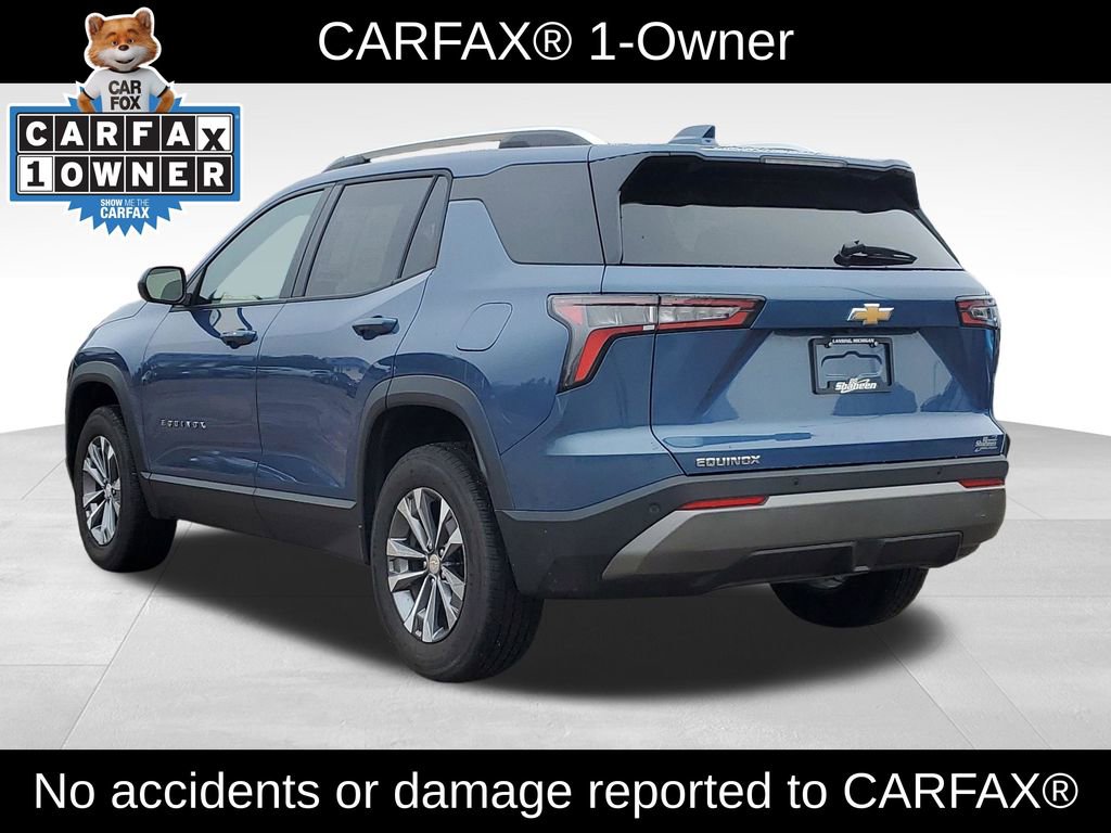 CARFAX One-Owner. Clean CARFAX. Lakeshore Blue Metallic 2025 Chevrolet Equinox LT FWD CVT 1.5L DOHC Navigation, One-owner Clean CARFAX, Sold New at Shaheen Chevrolet, Local Trade, Power Sunroof / Moonroof, Heated Seats, Power Dual Glass Panoramic Sliding Sunroof, Roof Rails. Recent Arrival! Odometer is 6451 miles below market average! 26/28 City/Highway MPG