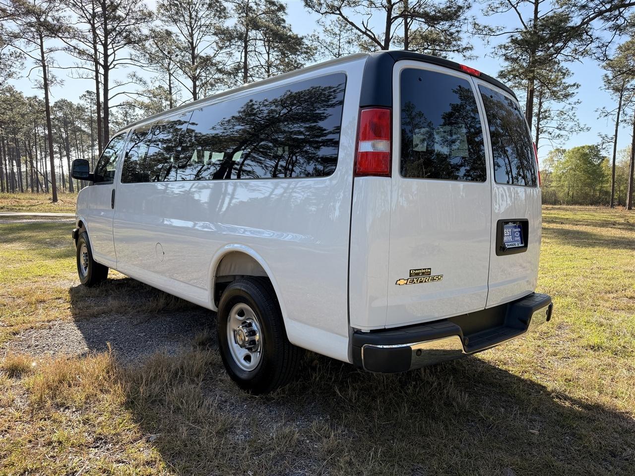 $2,000 below KBB Retail! This Chevrolet Express Passenger boasts a Gas V6 4.3L/ engine powering this Automatic transmission. Wheels, 4 - 16 x 6.5 (40.6 cm x 16.5 cm) steel include Gray center caps and steel spare (STD), transmission, 8-speed automatic, electronically controlled with overdrive and tow/haul mode. Includes Cruise Grade Braking, Powertrain Grade Braking and Tap-Up/Tap-Down Driver Shift Control (STD), Summit White. This Chevrolet Express Passenger features the following options: Side Blind Zone Alert, seats, front bucket with custom cloth trim head restraints and inboard armrests includes (BA3) console with swing-out storage bin. Seating, 15-passenger (2-3-3-3-4 seating configuration) 4-passenger seat is a 50/50 split, 2-piece configuration, rear park assist, rear axle, 3.42 ratio, paint, solid (STD), Medium Pewter, custom cloth, LT preferred equipment group includes standard equipment. Visit us today. Treat yourself- stop by Daniels Chevrolet located at 365 East Main Street, Swainsboro, GA 30401 to make this car yours today!