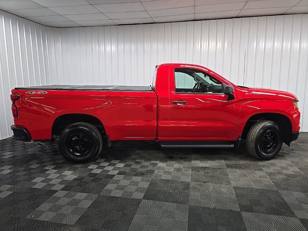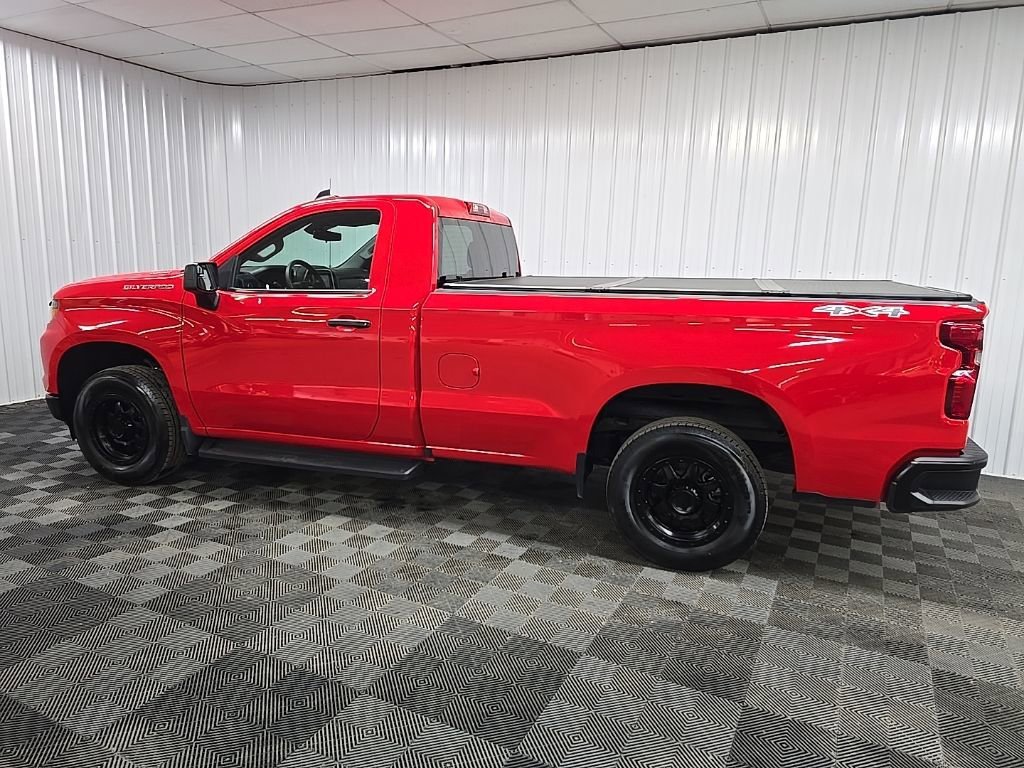The 2025 Chevrolet Silverado 1500 WT offers a TurboMax engine paired with an 8-speed automatic transmission. This truck features a Red Hot exterior and Jet Black interior. It is equipped with Four Wheel Drive and a range of safety and convenience features. The vehicle provides a comfortable ride with split-bench front seating and a rubberized vinyl floor covering. The Silverado is designed for both daily driving and more challenging conditions, thanks to its advanced stability control system and heavy-duty battery.