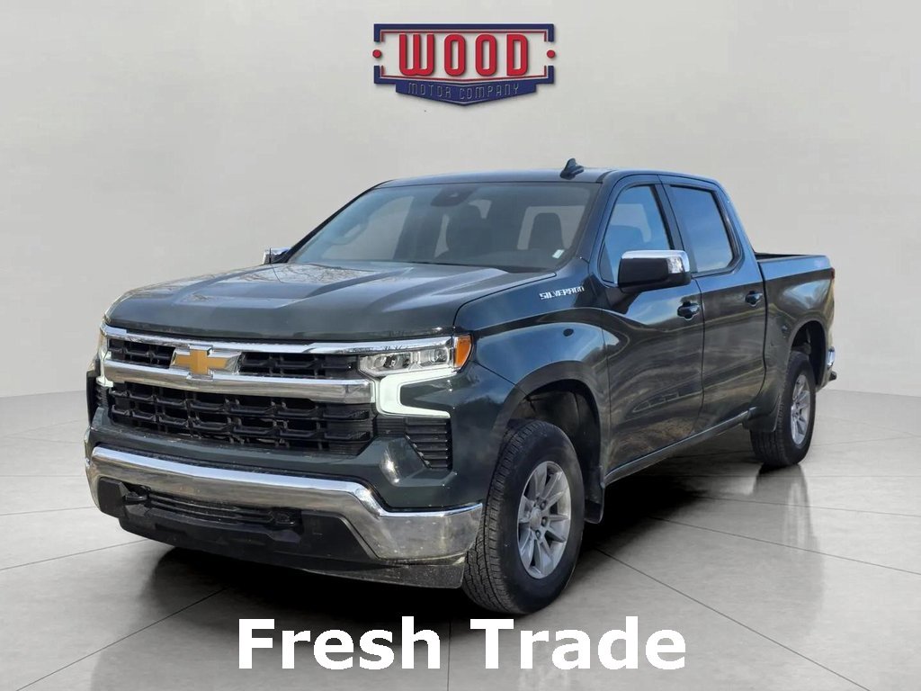 CARFAX One-Owner. Silverado 1500 LT LT1, 4D Crew Cab, EcoTec3 5.3L V8, 10-Speed Automatic, 4WD, Cypress Gray, Jet Black w/Cloth Seat Trim, 10-Way Power Driver Seat w/Lumbar, 12.3 Multicolor Reconfigurable Digital Display, 120-Volt Bed Mounted Power Outlet, 120-Volt Interior Power Outlet, All-Star Edition, Apple CarPlay/Android Auto, Auto-Locking Rear Differential, Automatic temperature control, Bluetooth For Phone, Chrome Mirror Caps, Color-Keyed Carpeting Floor Covering, Convenience Package, Deep-Tinted Glass, Dual Rear USB Ports (Charge Only), Dual-Zone Automatic Climate Control, Electric Rear-Window Defogger, Electronic Cruise Control, Electronic Stability Control, EZ Lift Power Lock & Release Tailgate, Front dual zone A/C, Front Frame-Mounted Black Recovery Hooks, Front Rubberized Vinyl Floor Mats, Fully automatic headlights, HD Rear Vision Camera, Heated Driver & Front Outboard Passenger Seats, Heated front seats, Heated Power-Adjustable Outside Mirrors, Heated Steering Wheel, Hitch Guidance, Inside Rear-View Mirror w/Tilt, Integrated Trailer Brake Controller, Keyless Open & Start, LED Cargo Area Lighting, Manual Tilt/Telescoping Steering Column, OnStar Services Capable, Power driver seat, Power Front Windows w/Driver Express Up/Down, Power Front Windows w/Passenger Express Down, Power Rear Windows w/Express Down, Power windows, Preferred Equipment Group 1LT, Rear 60/40 Folding Bench Seat (Folds Up), Rear Rubberized-Vinyl Floor Mats, Remote keyless entry, Remote Start Package, Remote Vehicle Starter System, SiriusXM w/360L Trial Subscription, Speed control, Standard Tailgate, Steering Wheel Audio Controls, Steering wheel mounted audio controls, Teen Driver, Theft Deterrent System (Unauthorized Entry), Tire Pressure Monitoring System (Unauthorized Entry), Trailering Package and Wi-Fi Hot Spot Capable. Cypress Gray 2025 Chevrolet Silverado 1500 LT LT1 4WD 10-Speed Automatic EcoTec3 5.3L V8A solid name you can trust... Wood Motor. Recent Arrival! Odometer is 3922 miles below market average!