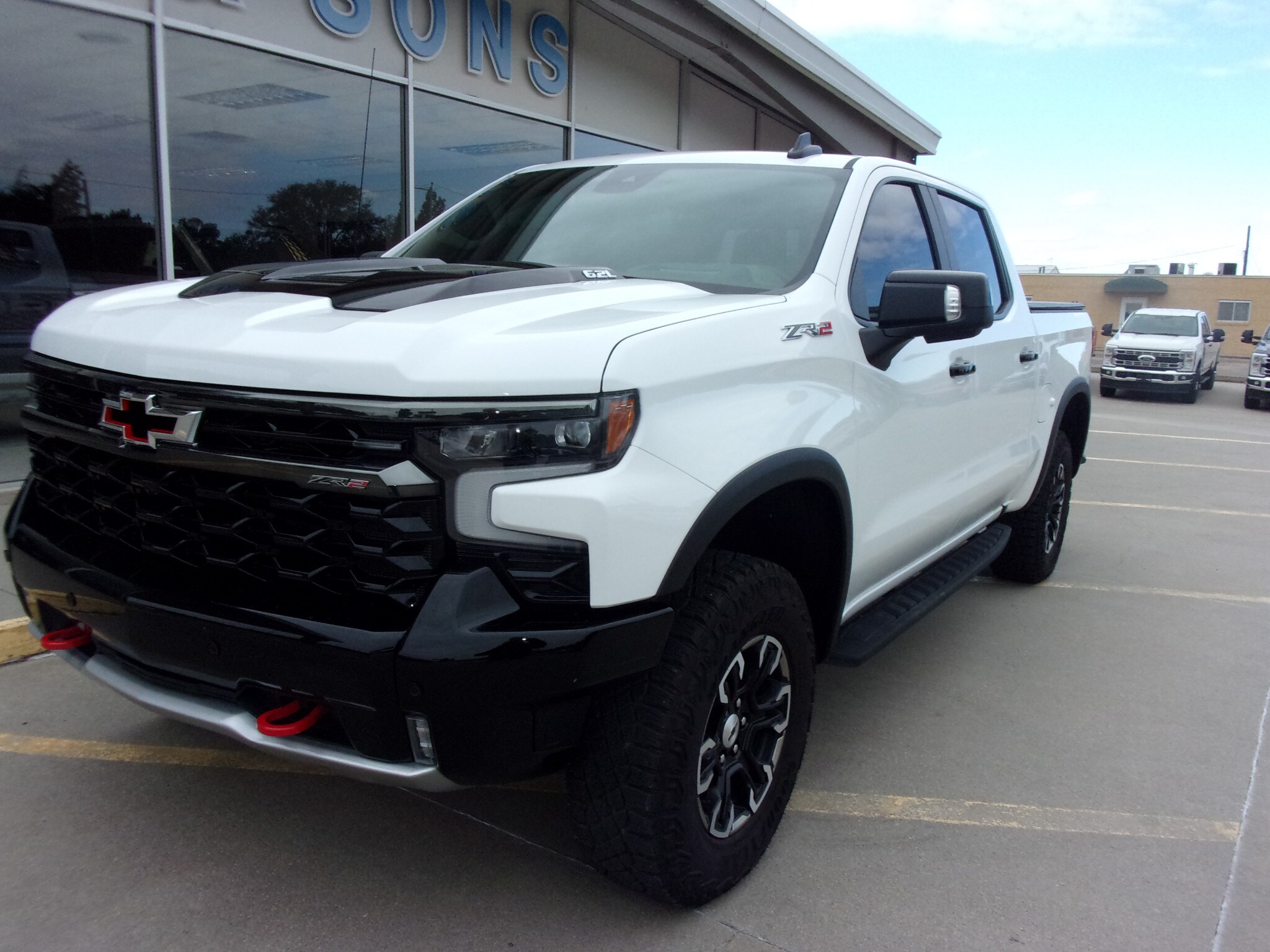 2025 Chevrolet Silverado ZR2, White with Black Leather, 6.2L V8, Heated/Cooled Seats, Heated Steering Wheel, Moonroof, Dual Power Seats, Power Tilt/Telescoping Wheel, Front & Rear Locking Axles, Lane Keeping Assist, Google Assist, Power Multiflex Tailgate, 2K Miles.