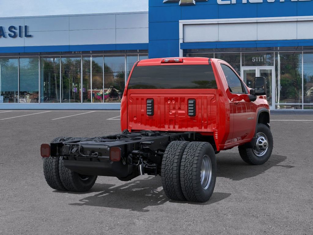 The 2025 Chevrolet Silverado 3500 HD Chassis Cab Work Truck offers a powerful 6.6L V8 engine with Direct Injection and Variable Valve Timing, delivering 401 horsepower and 464 lb-ft of torque. This heavy-duty truck features a painted steel wheel, split-bench front seat with covered armrest storage and under-seat storage, and a rear camera radio calibration provided from the factory. The Silverado is equipped with a Chevrolet Infotainment 3 system, 7" diagonal HD color touchscreen, AM/FM stereo, Bluetooth audio streaming, voice command pass-through to phone, and wireless Apple CarPlay and Android Auto compatibility.