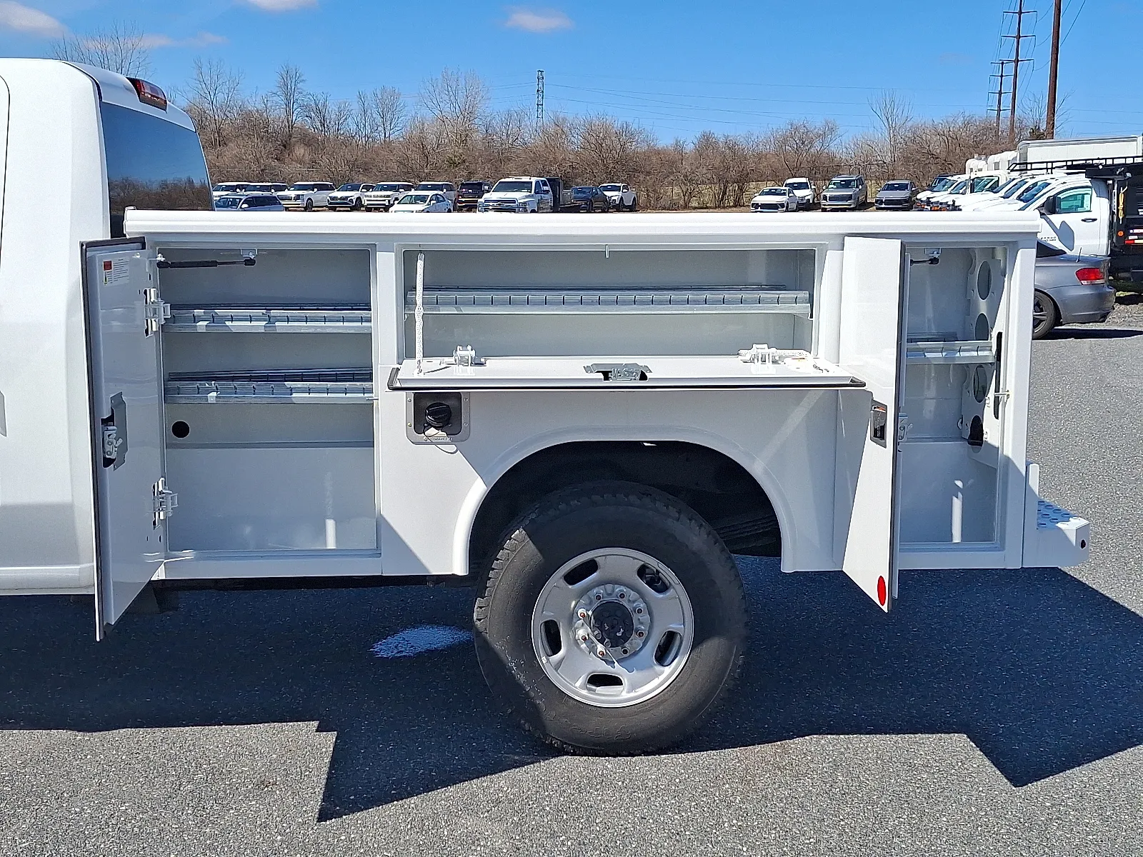Discover the 2025 Chevrolet Silverado 2500HD 4WD Regular Cab Long Bed Work Truck, a robust and reliable powerhouse built for demanding jobs. Finished in striking Summit White with a sleek Jet Black interior, this new pickup combines strength with modern technology. Equipped with a 6.6L V8 engine producing 401 horsepower and 464 lb-ft of torque, it offers outstanding towing capacity and performance. The truck features advanced safety and convenience options like Apple CarPlay, Bluetooth, a backup camera, collision warning, push start, WiFi hotspot, and a comprehensive tow package. Installed upgrades include a 220 Amp alternator, deep-tinted glass, electric rear-window defogger, skid plates, and a Snow Plow Prep Package, making it ready for tough conditions. Additional features such as an electric bed outlet, all-terrain tires, power-adjustable trailering mirrors, and a rear camera kit ensure this Silverado meets the needs of heavy-duty work and everyday utility alike. With a rugged build and thoughtful enhancements, this truck is designed to deliver dependable performance and versatility on every job site.