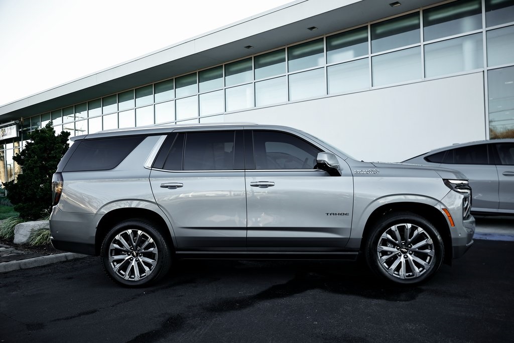 2025 Chevrolet Tahoe CARFAX One-Owner. Tahoe High Country, 4WD, Sterling Gray Metallic, Jet Black/Mocha Leather, 15" Diagonal Multi-Color Head-Up Display, 1st and 2nd Row Color-Keyed Carpeted Floor Mats, 2-Speed Active Electronic AutoTrac Transfer Case, 3-Spoke Wrapped Steering Wheel, 3rd Row 60/40 Power-Folding Split-Bench Seat, Advanced Security Package, Advanced Trailering Package, Air Ride Adaptive Suspension, AutoSense Hands-Free Power Liftgate, Blind Zone Steering Assist with Trailering, Bose 10-Speaker Centerpoint Surround Audio System Feature, Bright Front and Rear Door Sill Plates, Chrome Door Handles with Body-Color Strip, Color-Keyed Carpeting Floor Covering, Dual Exhaust System, Dual-Pane Power Panoramic Sunroof, Floor Console, Front Bucket Seats, Front LED Fog Lamps, Front Pedestrian and Bicyclist Braking, Frontal Driver and Outboard Passenger Airbags, Glass Breakage Sensor, Heated 2nd Row Outboard Seats, Heated Steering Wheel, High Country Deluxe, Hill Descent Control, Hitch View with Pan/Zoom Image Adjustment, Inside Rearview Auo-Dimming Rear Camera Mirror, Integrated Trailer Brake Controller, LED Headlamps with LED Daytime Running Lamps, LED Tail Lamps, License Plate Front Mounting Package, Magnetic Ride Control Suspension, Max Trailering Package, Memory Settings, Navigation system: Google built-in compatibility (select service plan required, terms and limitations apply), Outside Heated Power-Adjustable Mirrors, Power Release 2nd Row Bucket Seats, Power Tilt and Telescopic Steering Column, Power-Retractable Assist Steps, Preferred Equipment Group 3LZ, Rear Power Liftgate, Rear Seat Media System, Remote Start, Set of 4 Wheel Locks, SiriusXM with 360L Trial Subscription, Smart Trailer Integration Indicator, Technology & Entertainment Package, Technology Package, Theft-Deterrent Alarm System, Universal Home Remote, Vehicle Inclination Sensor, Vehicle Interior Movement Sensor.