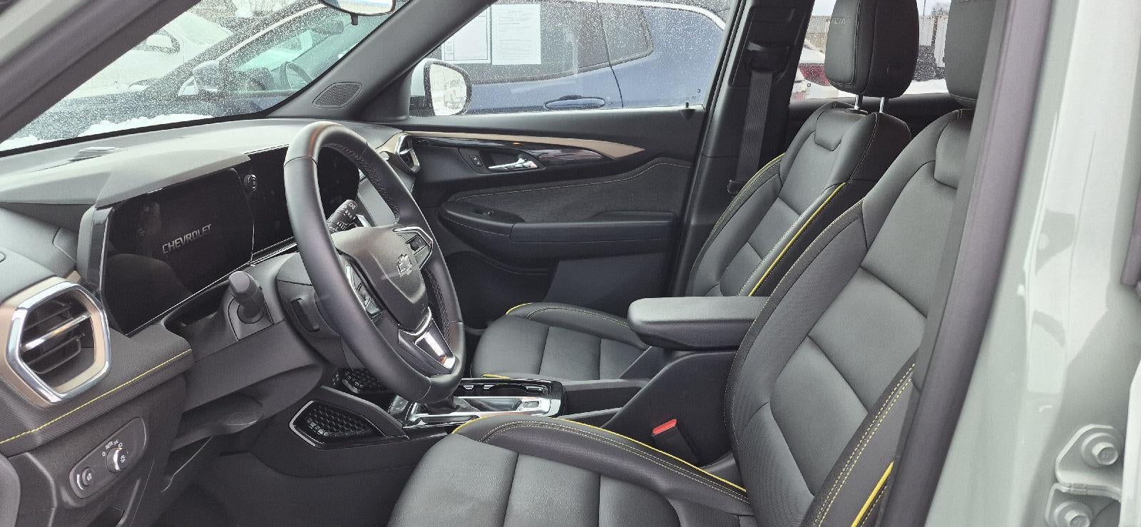 The 2025 Chevrolet Trailblazer ACTIV offers a comfortable and versatile interior with features like heated driver and front passenger seat cushions, power reclining driver seat, and an 8-way driver seat. The vehicle is equipped with an ECOTEC 1.3L Turbo engine and provides a smooth ride with independent front suspension and off-road suspension. It features a Cacti Green exterior and a Jet Black interior with yellow stitching. The Trailblazer is designed for convenience, safety, and entertainment, making it a great choice for daily driving or longer trips.