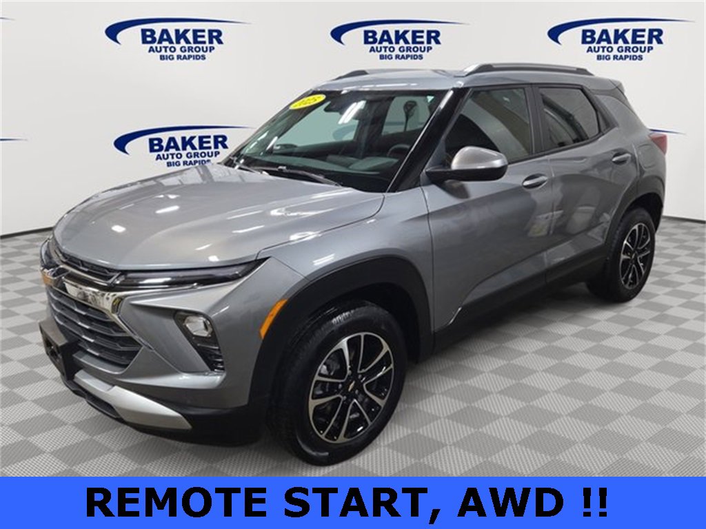 Sterling Gray Metallic 2025 Chevrolet TrailBlazer LT AWD 9-Speed Automatic 1.3L I3 Turbocharged DOHC 12V LEV3-SULEV30 155hp non smoker, detailed, oil change, Apple CarPlay, Android Auto, 1 owner, no accident Auto Check, all-wheel-drive, Preferred Equipment Group 1LT, Wireless Apple CarPlay/Android Auto. Recent Arrival! Odometer is 9308 miles below market average! 26/29 City/Highway MPG. CALL 231-796-7681 TO SCHEDULE YOUR TEST DRIVE TODAY!