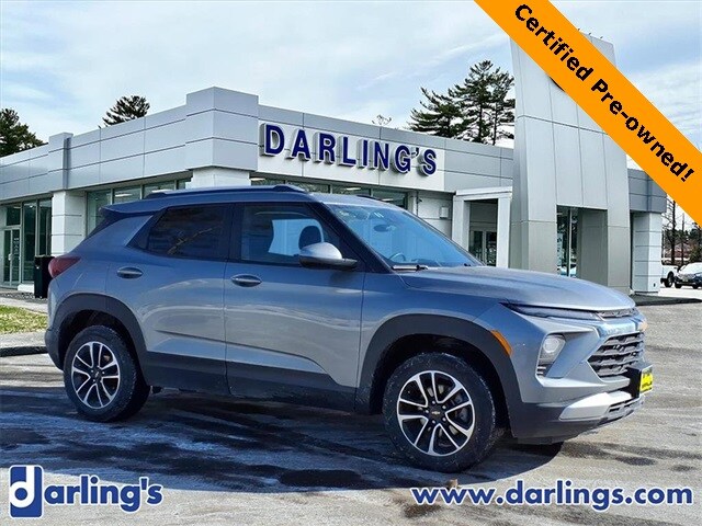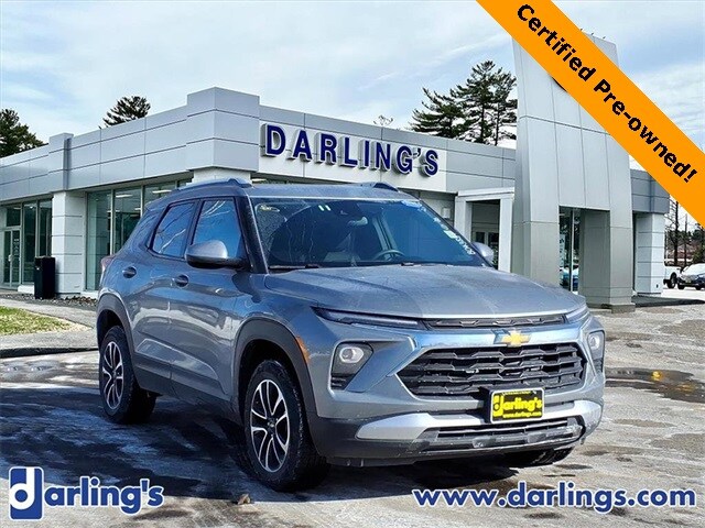 One-Owner 2025 Chevrolet Trailblazer AWD LT. Big Style, Smart Size, Maine-Ready! Sterling Gray Metallic with bold 17” High-Gloss Black wheels for standout curb appeal. Heated front seats & heated steering wheel to take the edge off Maine winters. Wireless Apple CarPlay & Android Auto with an 8” touchscreen for seamless tech. Remote start & keyless entry for everyday convenience. Confident, Efficient & Built for Everyday Adventures. AWD capability for confidence in snow, rain, and back roads. 1.3L Turbo engine delivering peppy performance with impressive fuel efficiency. LED headlamps & signature lighting for a modern look day or night. Advanced safety tech to keep you and your passengers protected. CPO ALERT! Darling’s Certified Pre-Owned means this Chevrolet comes with a powertrain warranty up to 6 years from the original in-service date or 100,000 total odometer miles, whichever comes first. This vehicle has been brought to the highest standard possible and then backed by us all the way to 100,000 miles.