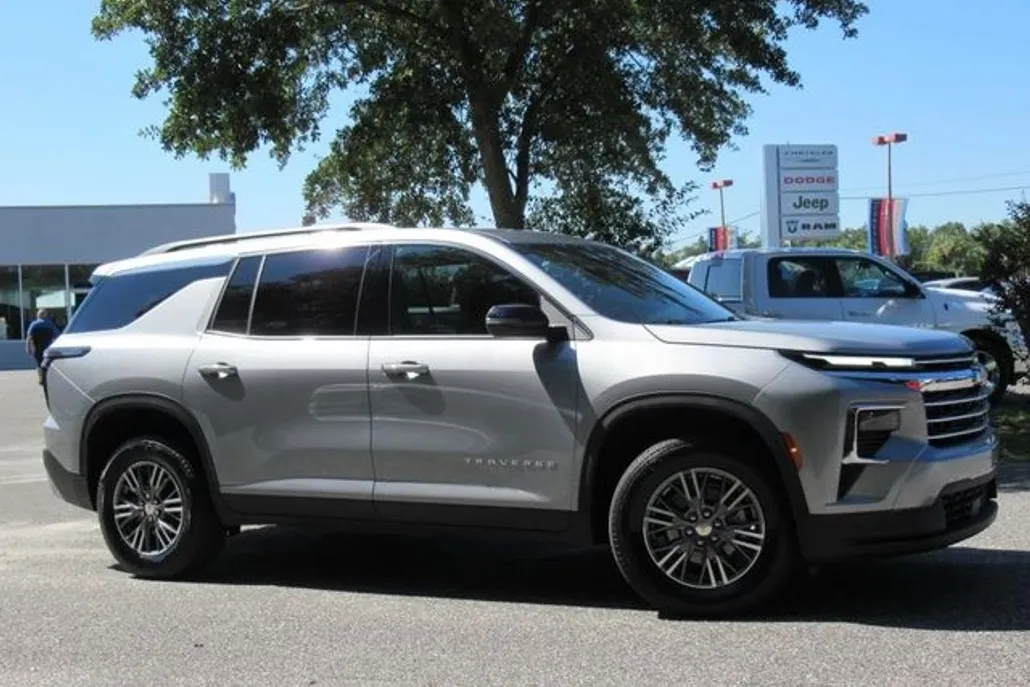 CARFAX One-Owner. Sterling Gray Metallic 2025 Chevrolet Traverse LT 1LT 2.5L DOHC 8-Speed Automatic FWD 3rd row seats: split-bench, 4-Way Manual Front Passenger Seat Adjuster, 6-Speaker Audio System Feature, 8-Way Power Driver Seat Adjuster, Apple CarPlay/Android Auto, Automatic temperature control, Front dual zone A/C, Fully automatic headlights, Heated front seats, Heated steering wheel, Illuminated entry, Navigation System, Power driver seat, Power Liftgate, Preferred Equipment Group 1LT, Radio: Audio System w/17.7" Diagonal Display, Rear air conditioning, Remote keyless entry, SiriusXM w/360L Trial Subscription, Steering wheel mounted audio controls, Wheels: 18" Grazen Metallic Machined-Face Aluminum. Priced below KBB Fair Purchase Price! Odometer is 3163 miles below market average! 20/27 City/Highway MPG Chiefland Chrysler Dodge Jeep Ram your AWARD WINNING sales leader family owned and operated for almost 40 years. Access to hundreds of preowned vehicles that are ready for sale. We are located on Young Blvd in Chiefland serving the entire Emerald Coast including Cedar Key, Newberry and all of Levy County. Price shown includes all available incentives, including EXCLUSIVE dealer discounts.