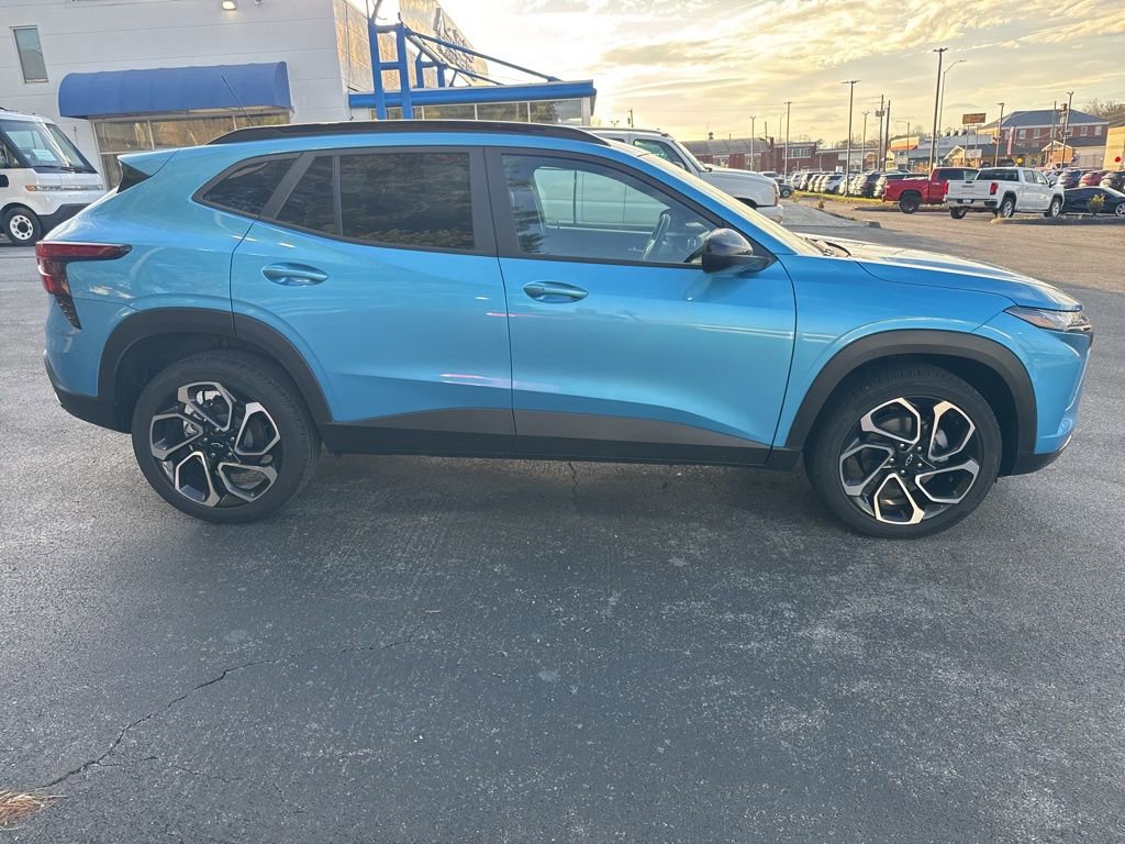 Recent Arrival! Carfax One-Owner. Marina Blue Metallic 2025 Chevrolet Trax 2RS FWD 1.2L I3 DI Turbocharged DOHC 12V LEV3-ULEV70 137hp Adaptive Cruise Control, Driver Confidence Package, Lane Change Alert with Side Blind Zone Alert, Power Sliding Glass Sunroof with Manual Shade, Preferred Equipment Group 2RS, Rear Cross-Traffic Alert, Rear Park Assist, Sunroof Package, Wireless Charging. At Bristol Chevrolet, we are the Undisputed Price Leader in The Tri Cities! Our $50,000 Price Protection Guarantee ensures you get the best deal possible. Odometer is 9150 miles below market average! 28/32 City/Highway MPG Awards: Car and Driver 10 Best. Car and Driver, January 2017. For more information call us at 423-793-7366 or visit us at BristolChevrolet.com! At Bristol Chevrolet, we serve the Tri-Cities and Southwest Virginia. Serving Bristol Tennessee and Bristol Virginia, Johnson City, Kingsport, Blountville, Piney Flats, Abingdon Virginia and all cities between Knoxville Tennessee and Roanoke Virginia.