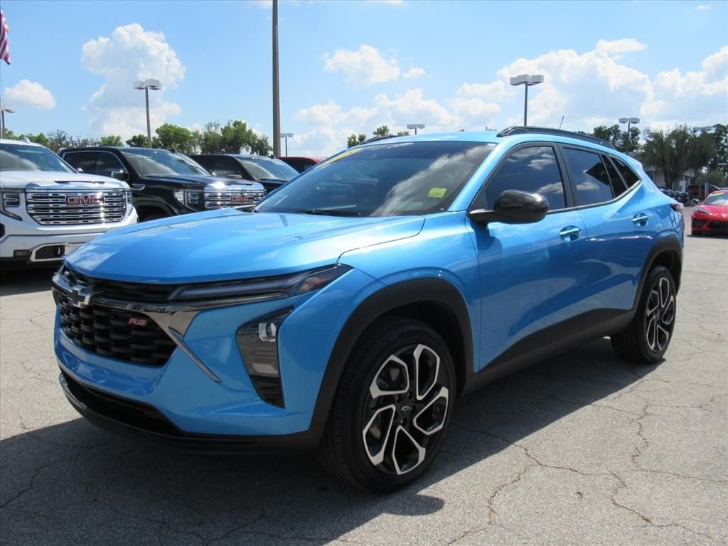 The 2025 Chevrolet Trax 2RS is a compact SUV that offers a compelling blend of style, performance, and practical versatility. With its sleek exterior, spacious interior, and impressive array of advanced features, this vehicle is poised to exceed your expectations and elevate your driving experience. Boasting a striking Marina Blue Metallic exterior, the Trax 2RS exudes a bold and confident presence on the road. Its well-appointed cabin is designed with your comfort and convenience in mind, featuring — - Fully Serviced and Detailed, - Blue. Under the hood, the Trax 2RS is powered by a 1.2L Ecotec Turbo DOHC DI engine with VVT, delivering a responsive and efficient driving experience. With an EPA-estimated 28 city/32 highway mpg, this compact SUV offers impressive fuel efficiency, allowing you to spend more time on the road and less time at the pump. The Trax 2RS is equipped with a host of advanced technologies to enhance your driving experience. The Chevrolet Infotainment 3 system, with a premium audio system and SiriusXM trial subscription, provides seamless connectivity and entertainment. Automated features like automatic temperature control, rear window defroster, and auto high-beam headlights add to the vehicle's user-friendly nature. Comfort and convenience are hallmarks of the Trax 2RS. Enjoy the luxurious feel of the heated front seats, the versatility of the split-folding rear seat, and the added control of the 8-way power driver's seat and 2-way power lumbar support. The leather-wrapped steering wheel and sport steering wheel further elevate the premium driving experience. Safety is paramount in the Trax 2RS, with features like dual front impact airbags, dual front side impact airbags, and an emergency communication system to give you peace of mind on the road. The vehicle's electronic stability control, 4-wheel disc brakes, and ABS brakes work together to provide confident handling and responsive braking. As you consider your next compact SUV, the 2025 Chevrolet Trax 2RS should be at the top of your list. With its exceptional blend of style, performance, and advanced technology, this vehicle is poised to exceed your expectations and provide an unparalleled driving experience. We invite you to visit our showroom and experience the Trax 2RS for yourself. Let us demonstrate how this exceptional vehicle can elevate your daily commute and weekend adventures.