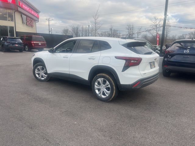 Jeff Wyler Eastgate Auto Mall is pleased to offer this attractive 2025 Chevrolet Trax LS in Summit White. Well equipped with: Driver Confidence Package (Lane Change Alert with Side Blind Zone Alert, Rear Cross-Traffic Alert, and Rear Park Assist), Preferred Equipment Group 1LS, 2-Way Adjustable Front Head Restraints, 3.50 Final Drive Axle Ratio, 4 Speakers, 4-Speaker Audio System Feature, 4-Way Manual Front Passenger Seat Adjuster, 4-Wheel Disc Brakes, 6-Way Manual Driver Seat Adjuster, ABS brakes, Air Conditioning, AM/FM radio: SiriusXM, Auto High-beam Headlights, Brake assist, Bumpers: body-color, Cloth Seat Trim, Compass, Delay-off headlights, Driver door bin, Driver vanity mirror, Dual front impact airbags, Dual front side impact airbags, Electronic Stability Control, Emergency communication system: OnStar One Essentials, Exterior Parking Camera Rear, Front and Rear All-Weather Floor Liners, Front anti-roll bar, Front Bucket Seats, Front Center Armrest, Front reading lights, Front wheel independent suspension, Fully automatic headlights, Illuminated entry, Low tire pressure warning, Occupant sensing airbag, Outside temperature display, Overhead airbag, Overhead console, Panic alarm, Passenger door bin, Passenger vanity mirror, Power door mirrors, Power steering, Power windows, Premium audio system: Chevrolet Infotainment 3, Radio data system, Radio: Chevrolet Infotainment 3 System with AM/FM, Rear window defroster, Rear window wiper, Remote keyless entry, Security system, SiriusXM Trial Subscription, Speed control, Split folding rear seat, Spoiler, Steering wheel mounted audio controls, Tachometer, Telescoping steering wheel, Tilt steering wheel, Traction control, Trip computer, Variably intermittent wipers, and Wheels: 17 Steel with Covers. CARFAX One-Owner. Clean CARFAX. Awards:* Car and Driver 10 BestCar and Driver, January 2017. Ask about available certifications. Used vehicles 10 years of age or newer with less than 100,000 miles are eligible for the Wyler Assurance Program, but eligible vehicles must pass our reconditioning process and multi-point inspection. Provided the vehicle passes inspection, vehicles will be eligible for the 6 month/6,000 mile limited warranty. The 6 month/6,000 mile limited warranty is NOT available on AS-IS vehicles, wholesale vehicles, lease buyback/pass-thru vehicles or un-inspected vehicles. Note that this program can also apply to vehicles where the remaining factory coverage is less than 6 months or 6,000 miles. Please check the Federal Trade Commission (FTC) Buyers guide on the vehicle for full details as to whether or not warranty coverage may apply. Contact Dealer for additional details. The Wyler Assurance 6 month/6,000 Mile limited warranty ends 6 months from the date of the Retail Purchase Agreement (BUYERS ORDER) or when the vehicle's odometer registers 6,000 additional miles to the mileage listed on the BUYERS ORDER, whichever comes first. Your Deductible - The warranty holder on your contract pays the first $100 of each covered repair.