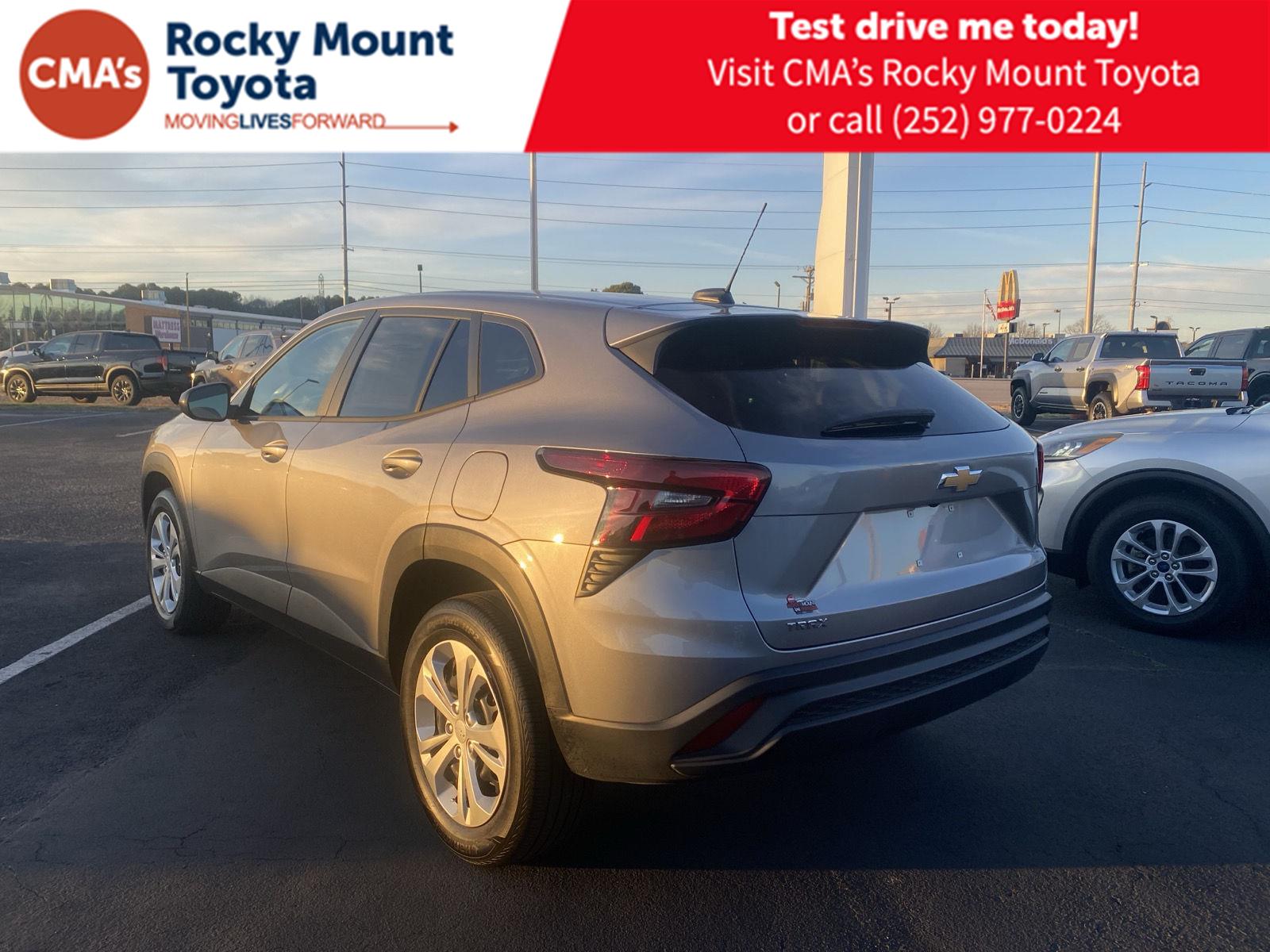Thank you for choosing CMA's Rocky Mount Toyota, this Sterling Gray Metallic 2025 Chevrolet Trax LS is a great choice! Check out the following: No Accidents! One Owner! City 28/ Hwy 32. Preferred Equipment Group 1LS. Pricing includes $1,000 dealer financing discount. Customer must finance with dealer through in house finance partners, or add back the $1,000 for any outside liens or cash purchases. Pricing excludes tax, tags, doc fee, and dealer added accessories. All vehicles are sold on a first come first serve basis due to multiple people interested in the same vehicles without prior knowledge. Pricing Info Good Today Through Close of Business. Pricing includes $1,000 dealer financing discount. Customer must finance with dealer through in house finance partners, or add back the $1,000 for any outside liens or cash purchases. Pricing excludes tax, tags, doc fee, and dealer added accessories. All vehicles are sold on a first come first serve basis due to multiple people interested in the same vehicles without prior knowledge. Pricing Info Good Today Through Close of Business. At Rocky Mount Toyota we believe in "Live Market Pricing" on all vehicles in our inventory. We use real-time market price comparisons to constantly adjust prices to provide all buyers the best value price possible. Pricing Info Good Today Through Close of Business. We utilize state-of-the-art technology to constantly monitor pricing trends in order to offer our shoppers our best competitive pricing and value. Our entire team is committed to helping you buy a car the way we would want to buy a car!