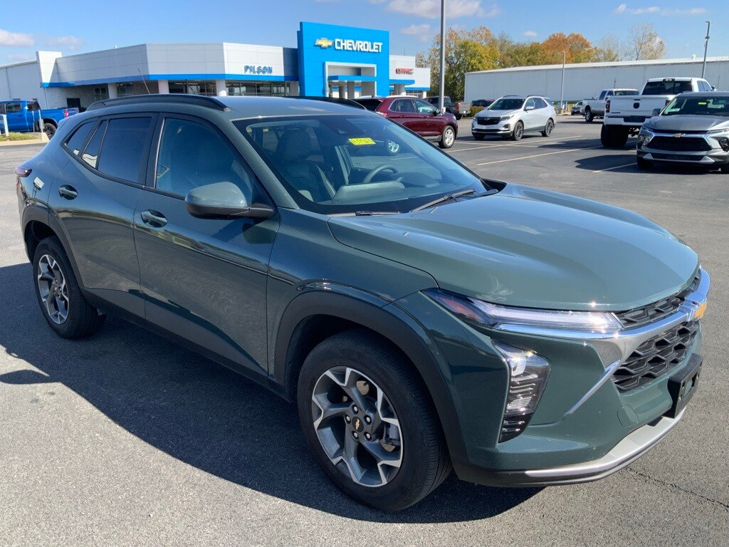 Thank you for choosing Pilson Chevrolet GMC, this 2025 Chevrolet Trax LT in Cypress Gray is a great choice! Check out the following: Carfax One Owner! Clean Carfax History! City 28/ Hwy 32. Want us to come to you? No problem! In case we missed a picture or a detail you would like to see we are happy to send you a personal video walking around the vehicle focusing on the closest details that are important to you. We can jump on a video call or send it directly to you via text or email. We look forward to hearing from you. Like every Pilson quality pre-owned, this vehicle has been completely serviced and inspected before it is offered for sale. Our quality pre-owned vehicles are meticulously detailed inside and out and ready to go. Click or call today on this great vehicle opportunity. BrakePlus option not included in internet price. If it's Pilson, it's possible! Pilson Auto Group is dedicated to your satisfaction before, during, and after your purchase. We'll go the extra mile to take care of you.