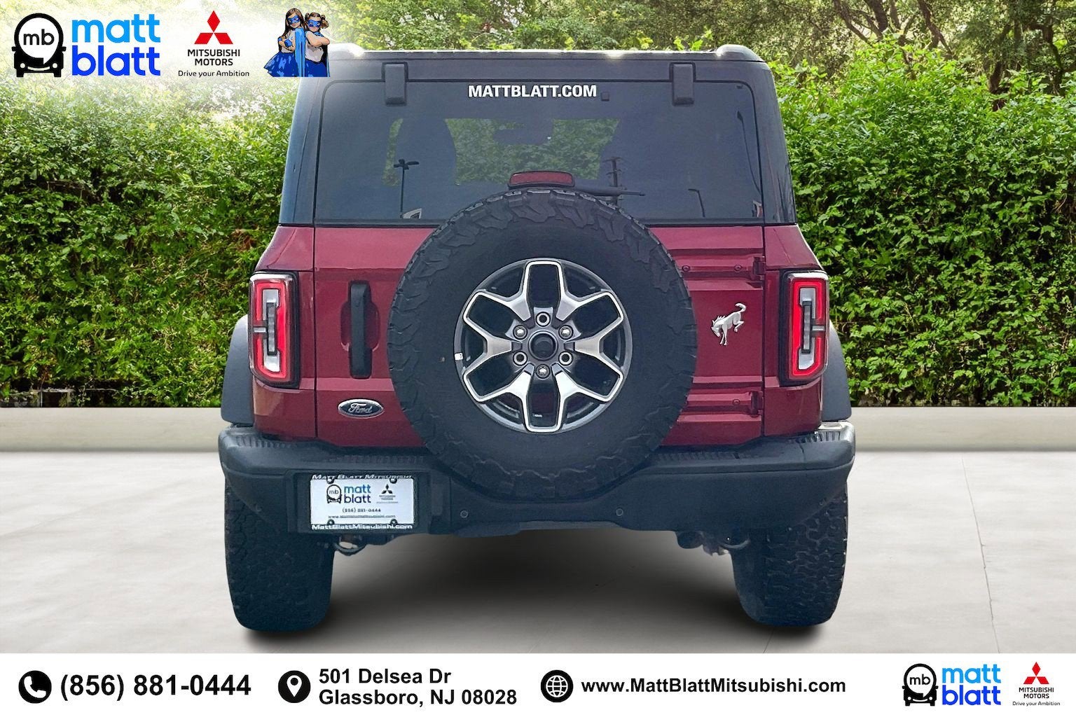 This new 2025 Ford Bronco Badlands 4WD finished in Ruby Red Metallic is built for serious off-road capability with modern comfort and technology, available now at Matt Blatt Mitsubishi in Glassboro, NJ. Powered by the strong 2.7L EcoBoost V6 paired with a 10-speed automatic transmission, this Bronco delivers impressive torque, responsive performance, and confidence on and off the pavement throughout South Jersey. The Badlands trim is engineered for adventure, making it a perfect choice for drivers coming from Deptford, Washington Township, Turnersville, and Sewell who want rugged capability without sacrificing everyday usability. With advanced safety tech, heated seats, and connected navigation, this Bronco blends trail-ready toughness with refined driving comfort. If you're searching for a bold, capable new SUV for sale in Glassboro, NJ, this Badlands stands out.