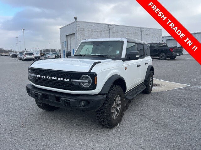2025 Ford Bronco Badlands 4WD Oxford White 10-Speed Automatic 2.7L EcoBoost V6. At Reineke Family Dealerships, we pride ourselves on delivering a convenient and transparent buying experience. We are Lima's Ford Store! Proudly serving the Lima, Kenton, Bluffton, Shawnee, Delphos communities. Get your key from Reineke! Odometer is 3619 miles below market average! Priced below KBB Fair Purchase Price! Please be aware that all listed vehicles are subject to additional applicable sales tax, titling, license, and registration fees, including a registration convenience fee of $50 where applicable and a documentary fee of up to $387. We attempt to update this inventory on a regular basis. However, there can be a delay between the sale of a vehicle and the update of the inventory. Vehicle mileage listed may vary due to vehicle demonstrations. All pre-owned vehicles are represented and sold AS-IS with no dealer warranty, although manufacturer warranty may remain and vehicle may be eligible for an optional vehicle service contract. All vehicles are subject to prior sale, so please give us a call at 419-223-3673 to confirm vehicle availability. Vehicles shown at different locations are not currently in our inventory (not in stock) but can be made available to you at our location within a reasonable date from the time of your request, not to exceed one week.