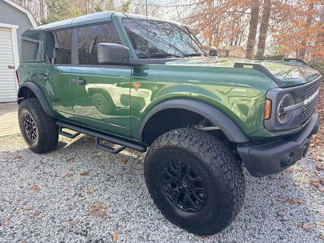 This 2025 Ford Bronco Badlands in Green Metallic features: Rough Country Conversion with 3 1/2 inch suspension lift with heavy duty tie rods and heavy duty rear sway bar. Aluminum hub adapters with 14mm studs and Bronco Raptor wheels with 37x12.5x17 inch Goodyear AT tires. 3rd brake light relocate kit. Painted to match hard top. New Price! Odometer is 6406 miles below market average! 2.7L EcoBoost V6 4WD.