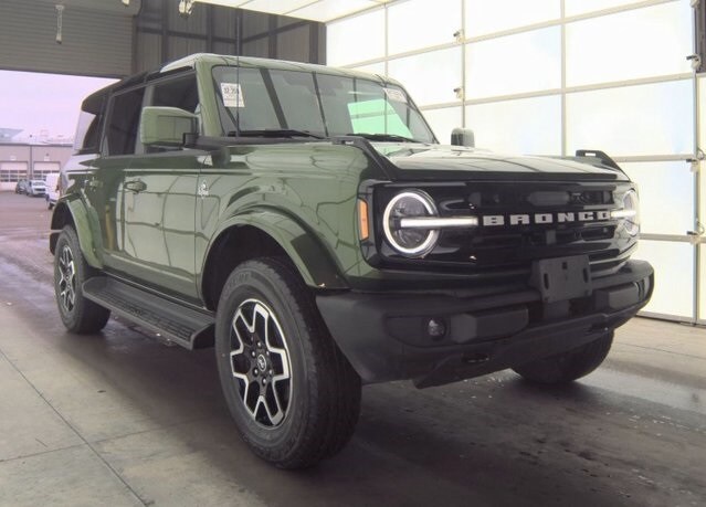 This 2025 Ford Bronco Outer Banks 4-Door 4x4 blends iconic Bronco capability with refined style and modern comfort, making it an excellent choice for drivers who want adventure-ready performance with a more upscale edge. Finished in Eruption Green Metallic, this Bronco stands out with a bold, unmistakable presence that pairs classic Bronco design cues with contemporary detailing. Under the hood is Ford's proven 2.3L EcoBoost I-4 engine paired with a 10-speed automatic transmission, delivering a responsive and efficient driving experience both on the highway and off the beaten path. The advanced 4x4 system adds confidence across changing terrain and weather conditions, while the Bronco's rugged construction ensures its ready for weekend exploration or everyday driving. Inside, the cabin balances durability with comfort. The black and smoked truffle leather-trimmed and vinyl seating surfaces provide a refined feel while remaining easy to clean after outdoor adventures. Power-adjustable front seats, dual-zone automatic climate control, and a leather-wrapped steering wheel enhance daily comfort, while the digital instrument cluster keeps important driving information front and center. Technology is seamlessly integrated throughout the interior. The large touchscreen display features SYNC with enhanced voice recognition, Apple CarPlay, and Android Auto, allowing easy access to navigation, music, and hands-free communication. Multiple USB ports throughout the cabin ensure everyone stays connected, and push-button start adds everyday convenience. Ford Co-Pilot360 safety technology supports confidence behind the wheel with features such as blind spot monitoring, lane-keeping support, rear view camera, rear parking sensors, and pre-collision assist with automatic emergency braking. These systems work together to provide added awareness whether you're navigating city streets or trailhead parking lots. Optional equipment on this Bronco includes 18-inch bright machined aluminum wheels, a hard top with sound-deadening headliner for a quieter ride, front row top panel storage, ambient interior lighting, and additional convenience features that elevate both comfort and usability. Whether you're cruising downtown, heading to the lake, or exploring scenic back roads, this Bronco Outer Banks delivers the versatility, style, and capability that define the Bronco name.