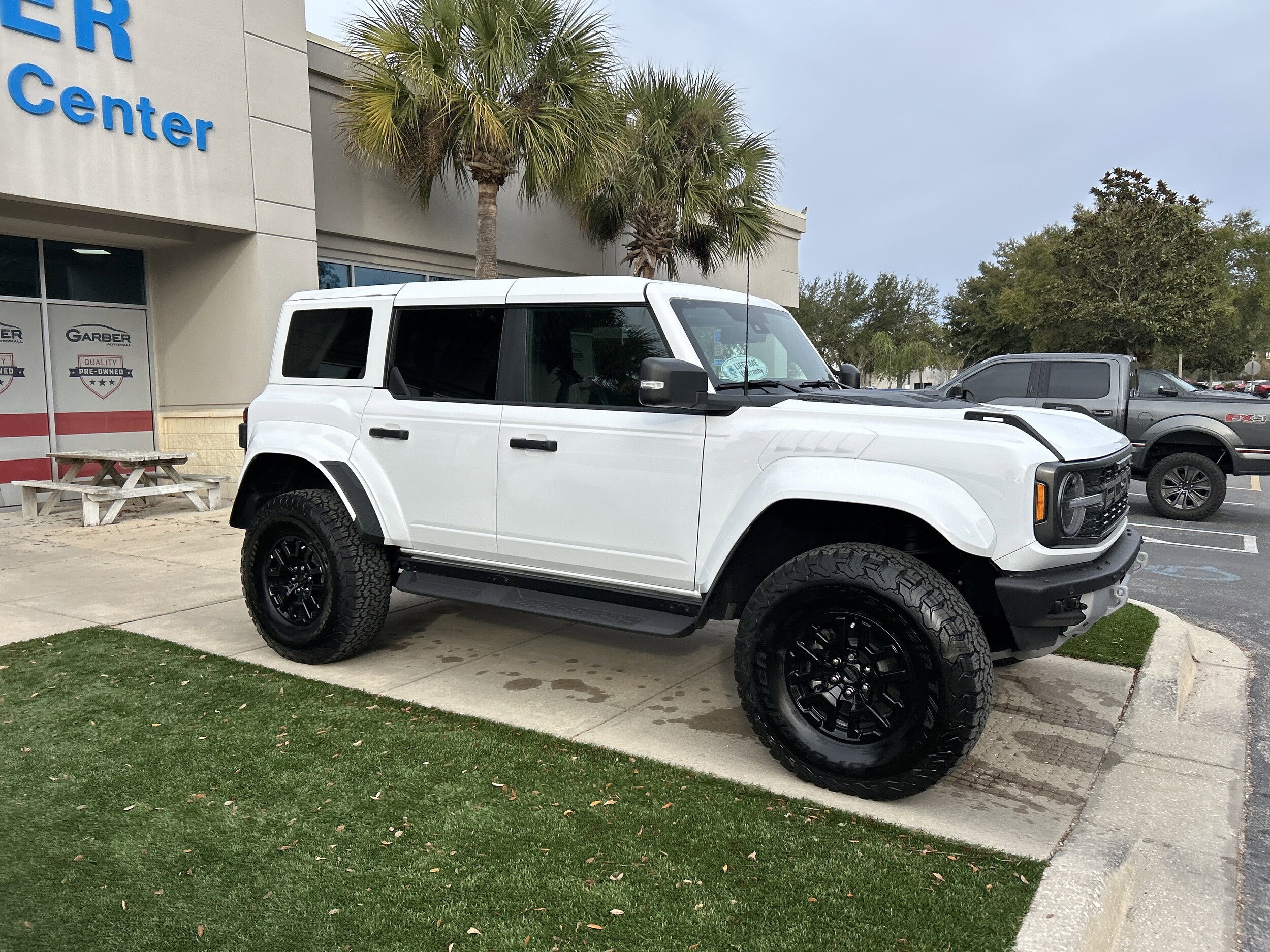 Lifetime Powertrain Warranty included! 2025 Ford Bronco Raptor Oxford White window tint, 12 speakers, 4-wheel disc brakes, ABS brakes, auto high-beam headlights, auto-dimming rear-view mirror, automatic temperature control, body color-painted hard top, compass, connected navigation, convertible hardtop, convertible roof lining, driver vanity mirror, electronic stability control, emergency communication system: 911 Assist, Equipment Group 374A Lux Package, exterior parking camera rear, front bucket seats, front dual zone A/C, front fog lights, front reading lights, fully automatic headlights, garage door transmitter, hard top sound deadening headliner, heated door mirrors, heated front seats, heated steering wheel, illuminated entry, integrated roll-over protection, internet access capable: FordPass Connect, leather shift knob, low tire pressure warning, navigation system: connected navigation, outside temperature display, overhead console, passenger vanity mirror, power door mirrors, power windows, radio: B&O Sound System by Bang & Olufsen, rear-window defroster & washer, remote keyless entry, security system, SiriusXM w/360L, speed control, split folding rear seat, steering wheel mounted audio controls, SYNC 4, telescoping steering wheel, tilt steering wheel, wheels: 17" black high gloss-painted aluminum. Clean CARFAX. CARFAX One-Owner.