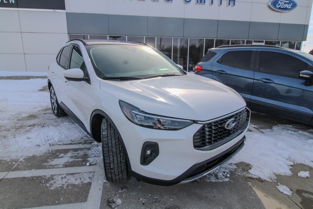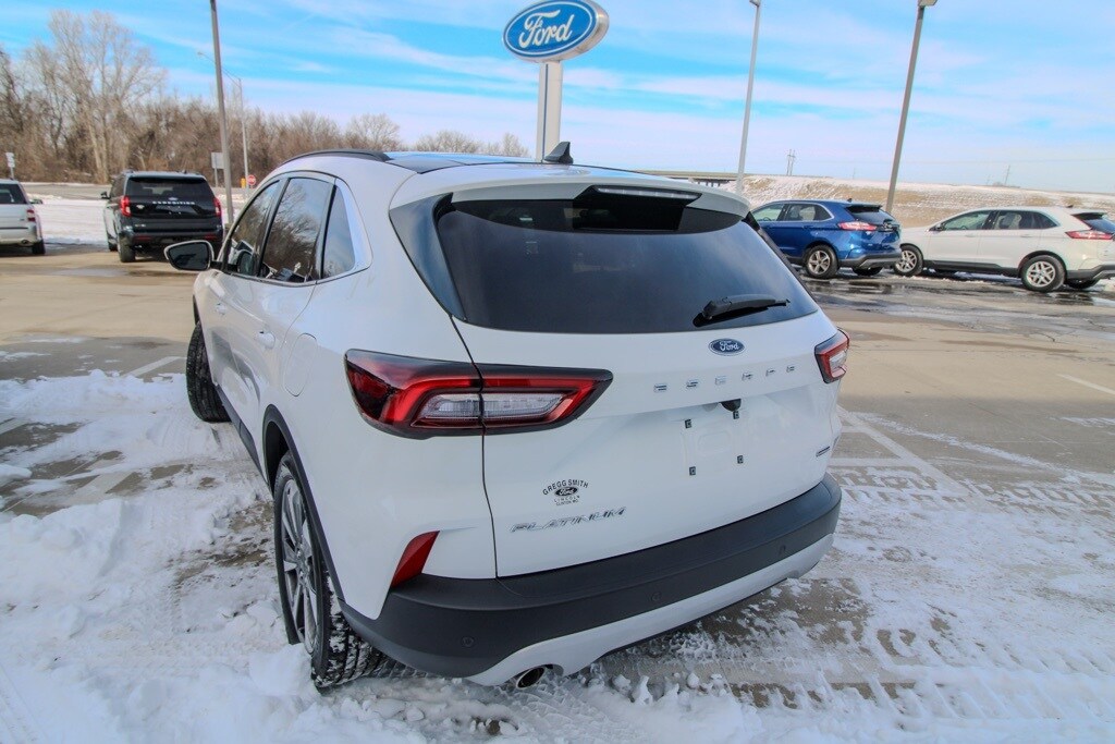 Recent Arrival! White Metallic 2025 Ford Escape Hybrid Platinum Platinum 2.5L iVCT AWD eCVT 42/36 City/Highway MPG. 2.5L iVCT. Gregg Smith Ford Lincoln has been serving the local community for over 30 years with no fees!! CALL NOW!! This vehicle will not make it to the weekend!!