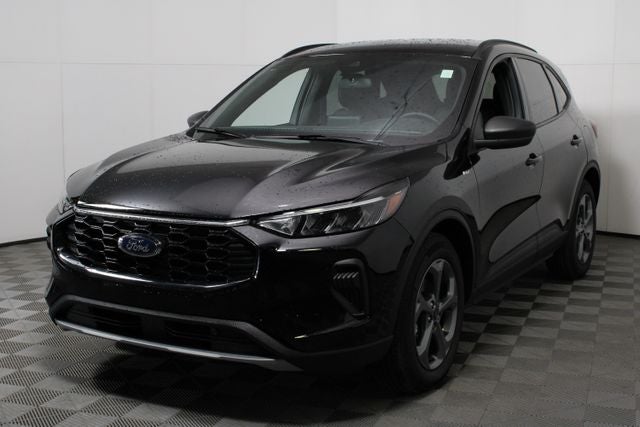Black Metallic 2025 Ford Escape ST-Line FWD 8-Speed Automatic 1.5L EcoBoost New Feature, Air Conditioning, Alloy wheels, AM/FM radio: SiriusXM, Auto High-beam Headlights, Brake assist, Bumpers: body-color, Cold Weather Package, Delay-off headlights, Driver door bin, Electronic Stability Control, Equipment Group 300A, FordPass Connect, Front Bucket Seats, Front Center Armrest, Front dual zone A/C, Front License Plate Bracket, Front reading lights, Fully automatic headlights, Heated Front Row Seats, Heated Sideview Mirrors, Heated Steering Wheel, Internet access capable: FordPass Connect 4G, Knee airbag, Low tire pressure warning, Outside temperature display, Overhead console, Passenger door bin, Power door mirrors, Power driver seat, Power Liftgate, Power steering, Power windows, Radio data system, Rear anti-roll bar, Rear reading lights, Rear seat center armrest, Rear window defroster, Rear window wiper, Remote keyless entry, Speed-Sensitive Wipers, Split folding rear seat, Spoiler, Sport steering wheel, Steering wheel mounted audio controls, SYNC 4, Tachometer, Tachometer, Tilt steering wheel, Variably intermittent wipers, Wheels: 18 Rock Metallic Painted Aluminum. Recent Arrival! Odometer is 20630 miles below market average! 27/34 City/Highway MPG