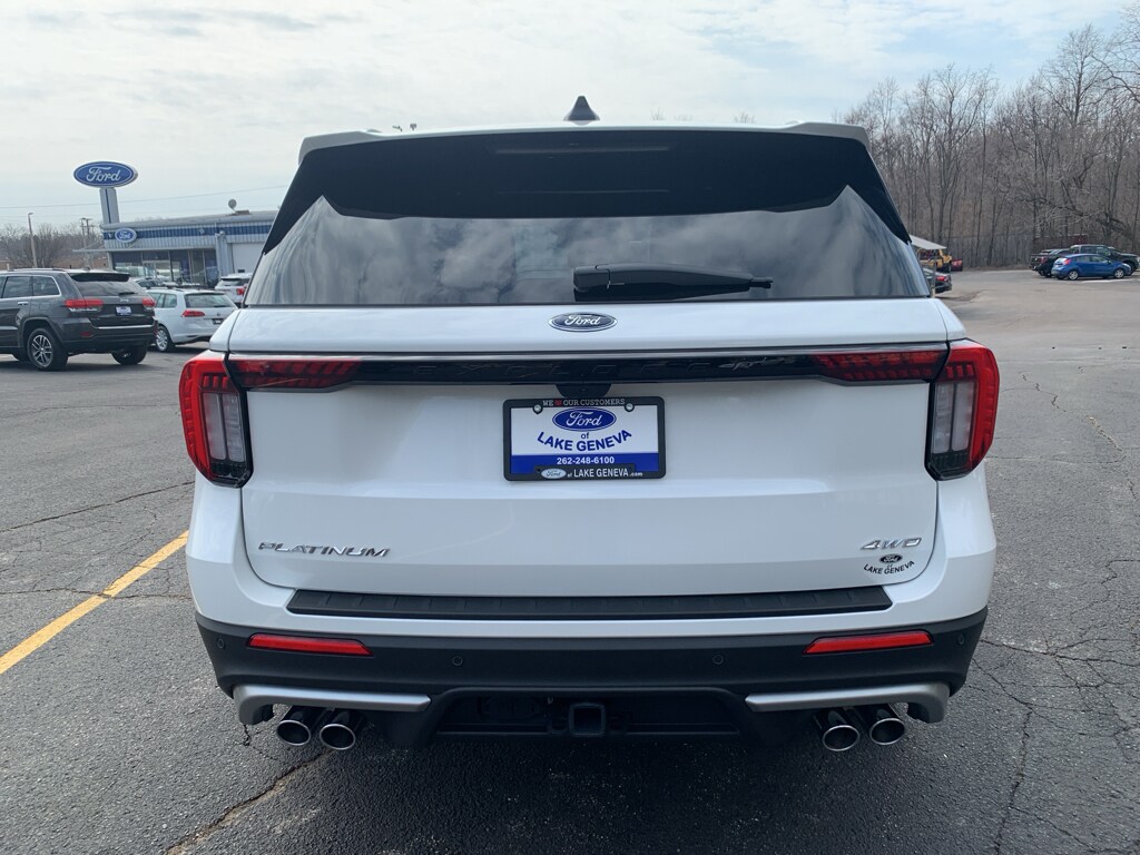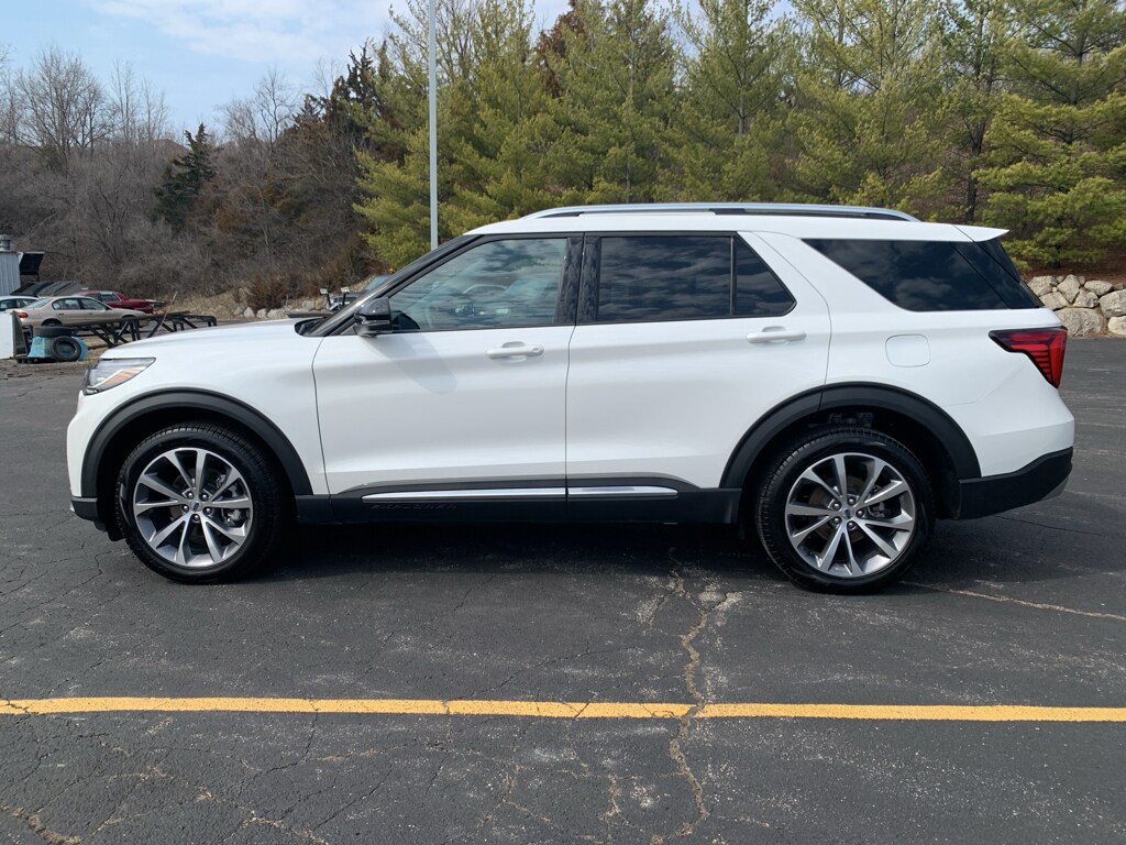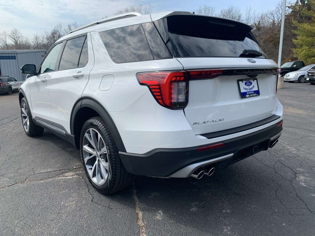 Look no further than this 2025 Ford Explorer Platinum, a pristine 1-owner SUV with just 11,629 miles, located in Lake Geneva, WI. This top-tier Ford Explorer combines a muscular 3.0L V6 gasoline engine and confident 4WD performance with a refined Platinum-level interior—delivering power, comfort, and advanced tech in a stylish package. With low mileage and meticulous care reflected on its CARFAX, this Ford Explorer is priced to move and represents the best value on the lot for buyers seeking premium features without the new-vehicle premium. Step inside to find sumptuous leather seats, heated and ventilated comfort, and a driver-focused cabin loaded with convenience. The back-up camera and adaptive cruise control enhance safety and safety. The title of the vehicle is "Clean". Whether tackling winter roads around Lake Geneva or heading out for a weekend getaway, the Ford Explorer Platinum's robust V6 and 4WD capability provide the confidence you need. This 2025 Ford Explorer Platinum stands out for combining low miles, a clean CARFAX 1-owner history, and competitive pricing—making it an ideal choice for buyers who want luxury, capability, and long-term value. Schedule a test drive in Lake Geneva, WI today and experience why this Ford Explorer Platinum is priced to sell fast. Exceptional condition, premium features, and the best price make it a smart buy.