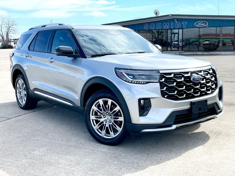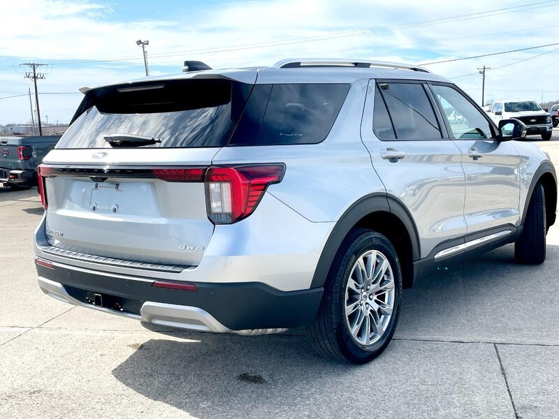 4x4, Platinum, Navigation, Panoramic Vista Roof, 2nd Row Bucket Seats, Ford Co-Pilot 360 Assist 2.0, Ford Pass and Dual Cup Holders in all Three Rows of Seats are just a few of the many options this 2025 Ford Explorer Platinum has. 2025 Ford Explorer Platinum with the Iconic Silver Metallic paint that looks awesome! Also adding to that look are the 20 Inch Nickel Painted Aluminum Wheels. Room for 6 passengers and you can fold down the 2nd and 3rd row seats to reveal over 87.8 cubic feet of cargo space. 2.3 liter 4 Cylinder EcoBoost Turbocharged engine with 300 Horsepower. This Explorer also has the Trailer Tow Hitch where you can Tow up to 5,000 pounds safely. Front Seats are Heated and Cooled...the Steering Wheel is Heated too. Everyone can appreciate Dual Cup Holders in all Three Rows of Seats! Navigation system to help guide you to those unfamiliar destinations. The radio is equipped with AM-FM-Sirius Satellite Radio and the SYNC system with USB inputs along with Bluetooth Connectivity. You also get Wireless Apple CarPlay and Android Auto. FordPass Connect system and with the FordPass App, you can remote Lock, Unlock and Remote Start this Explorer right from your smartphone. Open the Panoramic Vista Roof on those nicer days to enjoy the fresh air.