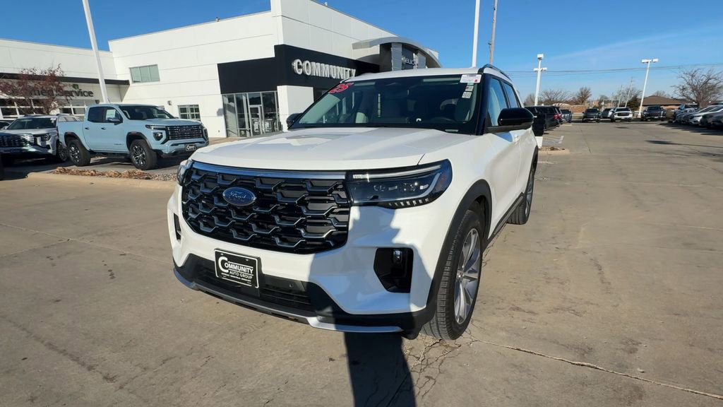 Adaptive Cruise Control, Alloy Wheels / Premium Wheels, Apple CarPlay/Android Auto, Backup Camera, Bluetooth, Hands-Free, Blind Spot Monitor, Heated Steering Wheel, Heated Seats, Push Button Start, Lane Departure Warning, Leather Seats, Memory Seat, Navigation System, Stability Control, Sunroof / Moonroof, Steering Wheel Controls, Third Row Seating / 3rd Row Seat, Tow Hitch / Trailer Hitch, USB Port, Ventilated / AC Seats, Remote Start. Local One Owner, Blue Cruise, 4WD, Radio: B&O Sound System by Bang & Olufsen w/HD, Wheels: 21 Dark Alloy-Painted Machined Aluminum. Recent Arrival! Odometer is 2140 miles below market average! Star White Metallic Tri-Coat 2025 Ford Explorer Platinum 3.0L EcoBoost V6 10-Speed Automatic 4WD. You're always welcome in our Community!