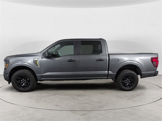 Gray Metallic 2025 Ford F-150 STX 4WD 10-Speed Automatic 2.7L V6 EcoBoost Clean CARFAX. 4WD, 3.55 Axle Ratio, 4-Wheel Disc Brakes, 6 Speakers, ABS brakes, Air Conditioning, Alloy wheels, AM/FM radio: SiriusXM with 360L, Auto High-beam Headlights, Brake assist, Bumpers: body-color, Compass, Delay-off headlights, Driver door bin, Dual front impact airbags, Dual front side impact airbags, Electronic Stability Control, Emergency communication system: SYNC 4 911 Assist, Equipment Group 200B Standard, Front anti-roll bar, Front Bucket Seats, Front Center Armrest, Front License Plate Bracket, Front reading lights, Front wheel independent suspension, Fully automatic headlights, GVWR: 6,650 lbs Payload Package, Heated door mirrors, Illuminated entry, Internet access capable: FordPass Connect 5G, Low tire pressure warning, Occupant sensing airbag, Outside temperature display, Overhead airbag, Overhead console, Panic alarm, Passenger door bin, Passenger vanity mirror, Power door mirrors, Power steering, Power windows, Radio data system, Radio: AM/FM Stereo w/SiriusXM 360L, Rear Parking Sensors, Rear step bumper, Rear window defroster, Remote keyless entry, Security system, Speed control, Split folding rear seat, Steering wheel mounted audio controls, SYNC 4 w/Enhanced Voice Recognition, Tachometer, Telescoping steering wheel, Tilt steering wheel, Traction control, Trip computer, Variably intermittent wipers, Voltmeter, Wheels: 18" Gloss Black, 4WD.