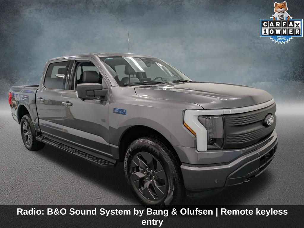 Elevate your driving experience with the exceptional 2025 Ford F-150 Lightning Flash. This all-electric powerhouse combines cutting-edge technology, uncompromising capability, and a bold, distinctive style that will turn heads wherever you go. With an impressive EPA-estimated 78 MPGe in the city and 63 MPGe on the highway, this F-150 Lightning Flash delivers exceptional efficiency and performance, all while maintaining the legendary toughness and versatility that has made the F-150 a trusted workhorse for generations. Beneath the sleek exterior lies a powerful electric motor that delivers instant torque and seamless acceleration, ensuring you can tackle any task or adventure with confidence. The advanced all-wheel-drive system provides exceptional traction and control, making this Lightning Flash a true all-weather companion. Step inside and you'll be greeted by a meticulously crafted interior that blends premium materials, cutting-edge technology, and thoughtful ergonomics. The B&O sound system delivers an immersive audio experience, while the SYNC 4A system with enhanced voice recognition and connected navigation keeps you informed and connected on the go. Heated front seats and a heated steering wheel provide comfort in any climate, while the remote keyless entry and mobile power cord make charging and accessing your vehicle a breeze. The Tailgate Step with Tailgate Work Surface adds even more versatility to this already impressive truck. With its exceptional range, advanced features, and uncompromising capability, the 2025 Ford F-150 Lightning Flash is the ultimate electric workhorse. Experience the future of pickup trucks today. Schedule a test drive and discover the power and innovation that await.