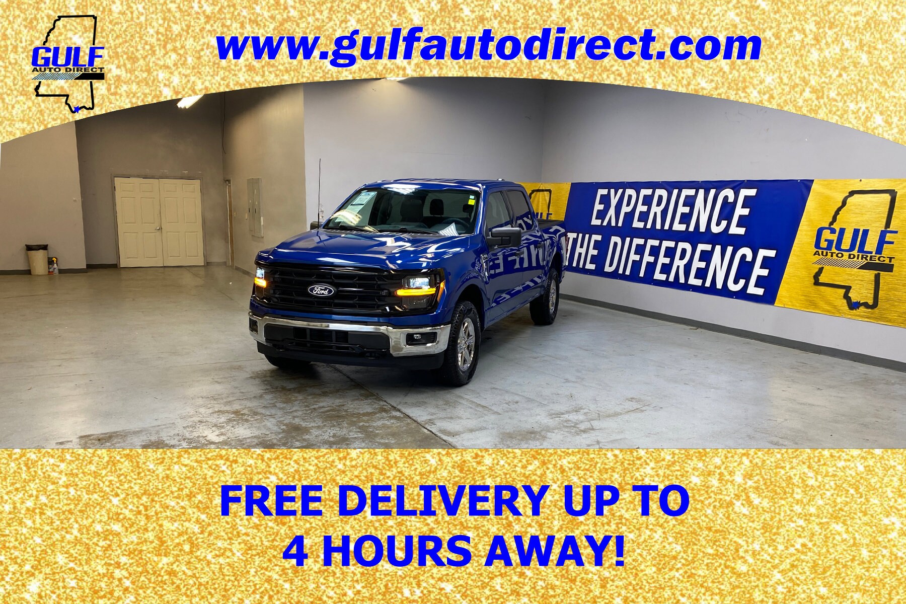 Blue Metallic 2025 Ford F-150 XLT 4WD 10-Speed Automatic 3.5L V6 EcoBoost. Odometer is 896 miles below market average! Priced below KBB Fair Purchase Price! Gulf Auto Direct proudly serving the Waveland, Bay St. Louis, Long Beach, Gulfport, Diamondhead, Kiln, Brookhaven, McComb and Hattiesburg, Mississippi, Hammond, Slidell, Baton Rouge, Mandeville, Metairie, New Orleans, Louisiana and beyond! If you’re looking for your next pre-owned, program or used car, trucks and SUV we have something for every taste, and every need. If you are asking yourself what is my trade worth we can help you answer that! Good or bad credit our financing department can offer you competitive loan or lease financing options. We will ship to anywhere in the US! Call us or visit us anytime www.gulfautodirect.com.