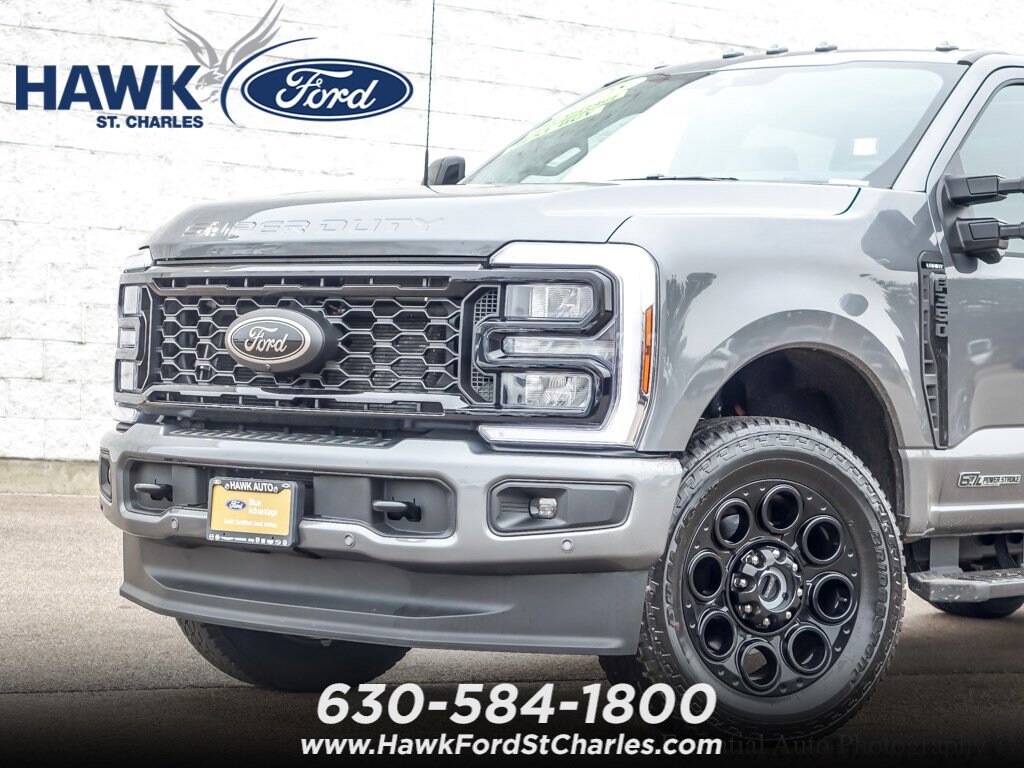This Ford Super Duty F-350 SRW boasts an Intercooled Turbo Diesel V-8 6.7 L/406 engine powering this automatic transmission. Upfitter switches (6) including location in overhead console, twin panel power moonroof with map lights and moonroof switches, transmission: TorqShift 10-speed automatic including SelectShift and selectable drive modes: normal, eco, slippery roads, tow/haul and off-road. This vehicle comes equipped with snow plow prep package, Lariat Ultimate Package, FX4 Off-Road Package, Black Appearance Package, and Pro Power Onboard. Test drive this must-see, must-drive, must-own beauty today at Hawk Ford of St. Charles.