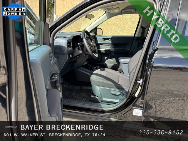 CARFAX One-Owner. Shadow Black 2025 Ford Maverick XL Hybrid FWD CVT 2.5L I-4 Hybrid 2.5L I-4 Hybrid, 2.91 Axle Ratio, 4-Wheel Disc Brakes, 6 Speakers, ABS brakes, Air Conditioning, AM/FM radio: SiriusXM with 360L, Apple CarPlay/Android Auto, Auto High Beams, Auto High-beam Headlights, Automatic temperature control, Brake assist, Bumpers: body-color, Compass, Delay-off headlights, Driver door bin, Driver vanity mirror, Dual front impact airbags, Dual front side impact airbags, Electronic Stability Control, Emergency communication system: SYNC 4 911 Assist, Exterior Parking Camera Rear, Front anti-roll bar, Front Bucket Seats, Front Center Armrest, Front Cloth Bucket Seats, Front reading lights, Front wheel independent suspension, Fully automatic headlights, Illuminated entry, Knee airbag, Low tire pressure warning, Occupant sensing airbag, Outside temperature display, Overhead airbag, Overhead console, Panic alarm, Passenger door bin, Passenger vanity mirror, Power steering, Power windows, Pre-Collision Assist w/Automatic Emergency Braking, Radio data system, Radio: AM/FM Stereo w/6 Speakers, Rear anti-roll bar, Rear step bumper, Rear-View Camera, Remote keyless entry, SiriusXM w/360L, Speed control, Speed-sensing steering, Steering wheel mounted audio controls, SYNC 4 w/Enhanced Voice Recognition, Telescoping steering wheel, Tilt steering wheel, Traction control, Trip computer, Wheels: 17" Steel w/Sparkle Silver Painted Cover. Call us directly at 1-844-695-6060! Delivery available upon request! Odometer is 6839 miles below market average! 42/35 City/Highway MPG WE PUT CUSTOMERS FIRST!