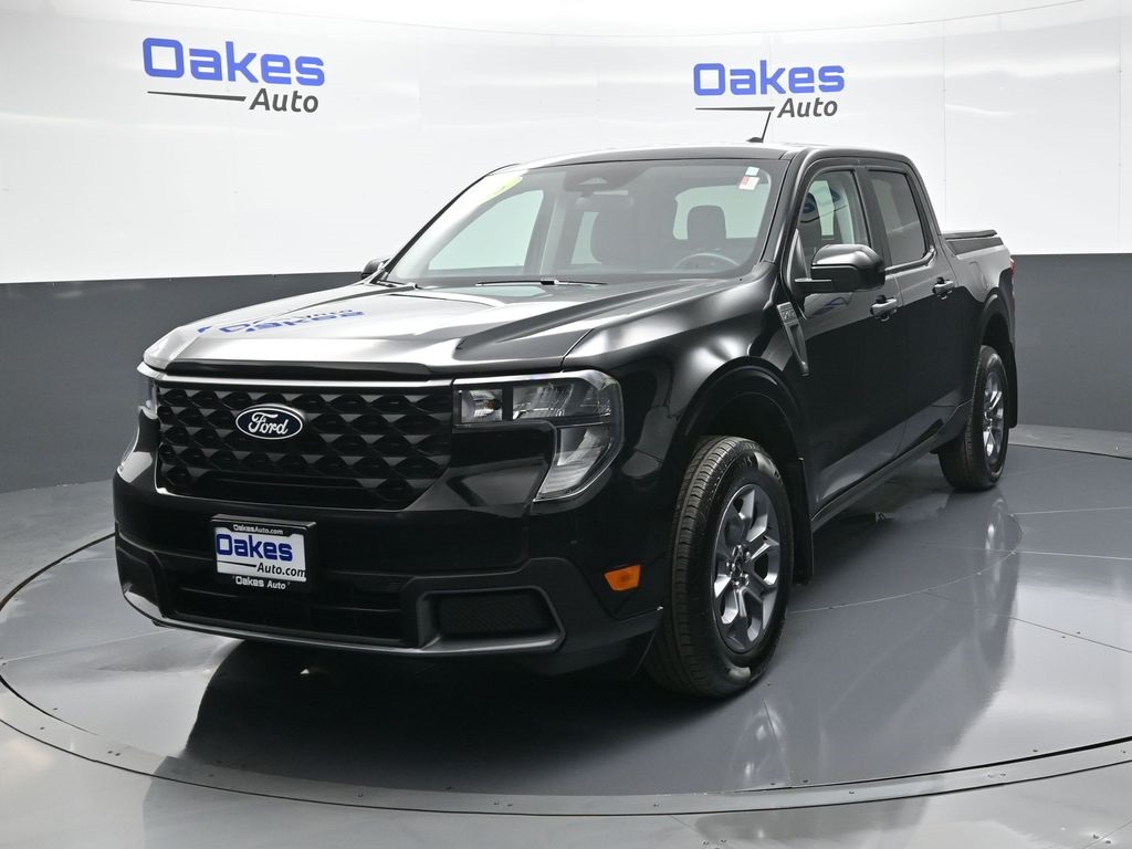 2025 Ford Maverick XLT 4D Crew Cab FWD CVT 2.5L I-4 Hybrid Shadow Black 2.5L I-4 Hybrid, 2.91 Axle Ratio, 4-Wheel Disc Brakes, 400W Inverter w/USB Console Rear, 6 Speakers, ABS brakes, Air Conditioning, Alloy wheels, AM/FM radio: SiriusXM with 360L, Apple CarPlay/Android Auto, Auto High Beams, Auto High-beam Headlights, Automatic temperature control, Brake assist, Bumpers: body-color, Compass, Delay-off headlights, Driver door bin, Driver vanity mirror, Dual front impact airbags, Dual front side impact airbags, Electronic Stability Control, Emergency communication system: SYNC 4 911 Assist, Equipment Group 300A, Exterior Parking Camera Rear, Front & Rear Molded Splash Guards (4-Piece), Front anti-roll bar, Front Bucket Seats, Front Center Armrest, Front reading lights, Front wheel independent suspension, Fully automatic headlights, Heated Mirror w/Painted Black Skull Caps, Heated Seats, Illuminated entry, Internet access capable: FordPass Connect 5G, Knee airbag, LED Box Lighting, Low tire pressure warning, Occupant sensing airbag, Outside temperature display, Overhead airbag, Overhead console, Panic alarm, Passenger door bin, Passenger vanity mirror, Power door mirrors, Power steering, Power windows, Pre-Collision Assist w/Automatic Emergency Braking, Radio data system, Radio: AM/FM Stereo w/6 Speakers, Rear anti-roll bar, Rear seat center armrest, Rear step bumper, Rear-View Camera, Remote keyless entry, Remote Start System, Security system, SiriusXM w/360L, Soft Vinyl Wrapped Heated Steering Wheel, Speed control, Speed-sensing steering, Steering wheel mounted audio controls, SYNC 4 w/Enhanced Voice Recognition, Telescoping steering wheel, Tilt steering wheel, Traction control, Trip computer, Unique Cloth Front Bucket Seats, Wheels: 17" Carbonized Gray Painted Aluminum, XLT Luxury Package. Buy in confidence with Oakes Auto Certified Pre-Owned Program! Select Pre-Owned models will receive a Free 6 months / 6,000-mile warranty! With our laid-back, quick, and pain-free sales process, our high standard of customer service, and our many financing options, we know you will find Oakes Auto to be a welcome change from your past experiences. Advertised price includes $2,000 Trade Assistance and $1,000 AutoFi Bonus Cash. Dealer Administration Fees not included. See www.oakesauto.com for details.
