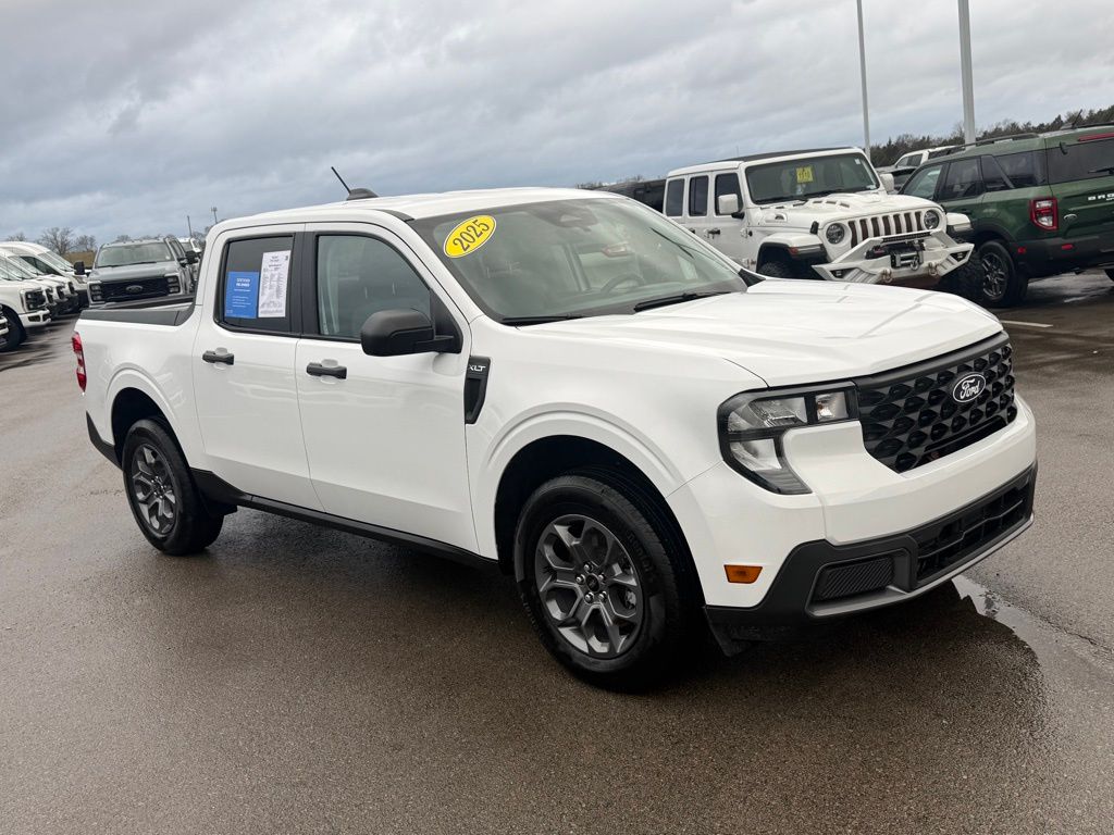 Captivating mileage -- 2.5L hybrid engine -- Apple CarPlay & Android Auto -- Backup camera -- SYNC 4 tech -- Automatic temperature control -- Navy Pier/A Aspen Gray interior -- Newton Certified Warranty. Meet the 2025 Ford Maverick XLT, a revolutionary Oxford White crew cab that perfectly harmonizes efficiency and capability. Right from the get-go, its 2.5L I-4 Hybrid engine offers an exhilarating blend of power and fuel economy, making each journey as thoughtfully efficient as it is thrilling. Whether you're navigating city streets or embarking on extended road trips, this hybrid Maverick is crafted to deliver an unmatched driving experience while fostering sustainability. Climb into the Navy Pier and Aspen Gray interior, where everyday journeys are magically transformed into enjoyable escapades. The unique cloth front bucket seats and automatic temperature control envelop you in comfort, ensuring that heatwaves or cold spells never disrupt your driving experience. It's not just about getting you from one point to another; it's about making every trip comforting and stress-free. Mesmerizing technology awaits with the SYNC 4 with Enhanced Voice Recognition, perfectly mated with Apple CarPlay and Android Auto for seamless smartphone integration. The hands-free, Bluetooth-enabled connectivity ensures your focus remains on the road while keeping you effortlessly connected. Whether you're streaming your favorite tracks or taking an urgent call, the 6-speaker sound system immerses you in crisp audio clarity, while SiriusXM with 360L ensures you're entertained with endless radio options. Safety reigns supreme in this Maverick, boasting a comprehensive suite of protective features such as Pre-Collision Assist with Automatic Emergency Braking. The trusted backup camera and auto high-beam headlights work hand in hand to give you the confidence of enhanced visibility and security on all your adventures. Feel the assurance only advanced safety technology combined with a robust build can provide. Beyond just utility, this Ford Maverick adds practicality with its thoughtful features, including a tow hitch and a rear step bumper. Whether you're towing outdoor toys for weekend adventures or simply unloading gear, this versatile companion is ready for the task. Its impressive fuel efficiency means fewer stops for gas and more time exploring. At Newton Ford South, we pride ourselves on transparent deals and a hassle-free buying experience, reflected in our glowing reviews. Don't miss your chance to redefine the roads you roam—come see the 2025 Ford Maverick XLT today and let it elevate your everyday adventures.