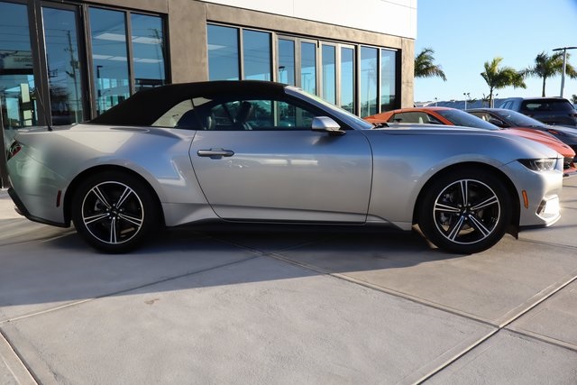 Carfax One-Owner. Silver Metallic 2025 Ford Mustang EcoBoost Premium RWD 10-Speed Automatic Keyless Start, Remote Start System, LED Headlights, LED Taillights, Mustang EcoBoost Premium, 2D Convertible, EcoBoost 2.3L I4 GTDi DOHC Turbocharged VCT, 10-Speed Automatic, RWD, Silver Metallic, Black Onyx Premium Synthetic, Dual front impact airbags, Dual front side impact airbags, Exterior Parking Camera Rear, Front dual zone A/C, Heated door mirrors, Knee airbag, Power door mirrors, Rain sensing wipers, Rear Parking Sensors, Remote keyless entry, Steering wheel mounted audio controls, Turn signal indicator mirrors, Wheels: 18" x 8" Machined-Face Aluminum. Recent Arrival! Odometer is 3176 miles below market average! 20/28 City/Highway MPG Visit our virtual showroom 24/7 at www.mazdaofclearwater.com.